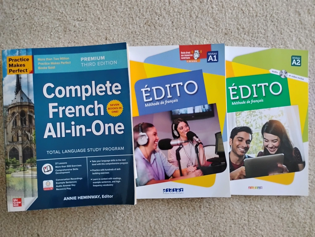 Selling a set of French language learning books! Includes: - Practice Makes Perfect: Complete French All-in-One (Premium Third Edition) by Annie Hemingway - Édito Méthode de français A1 - Édito Méthode de français A2