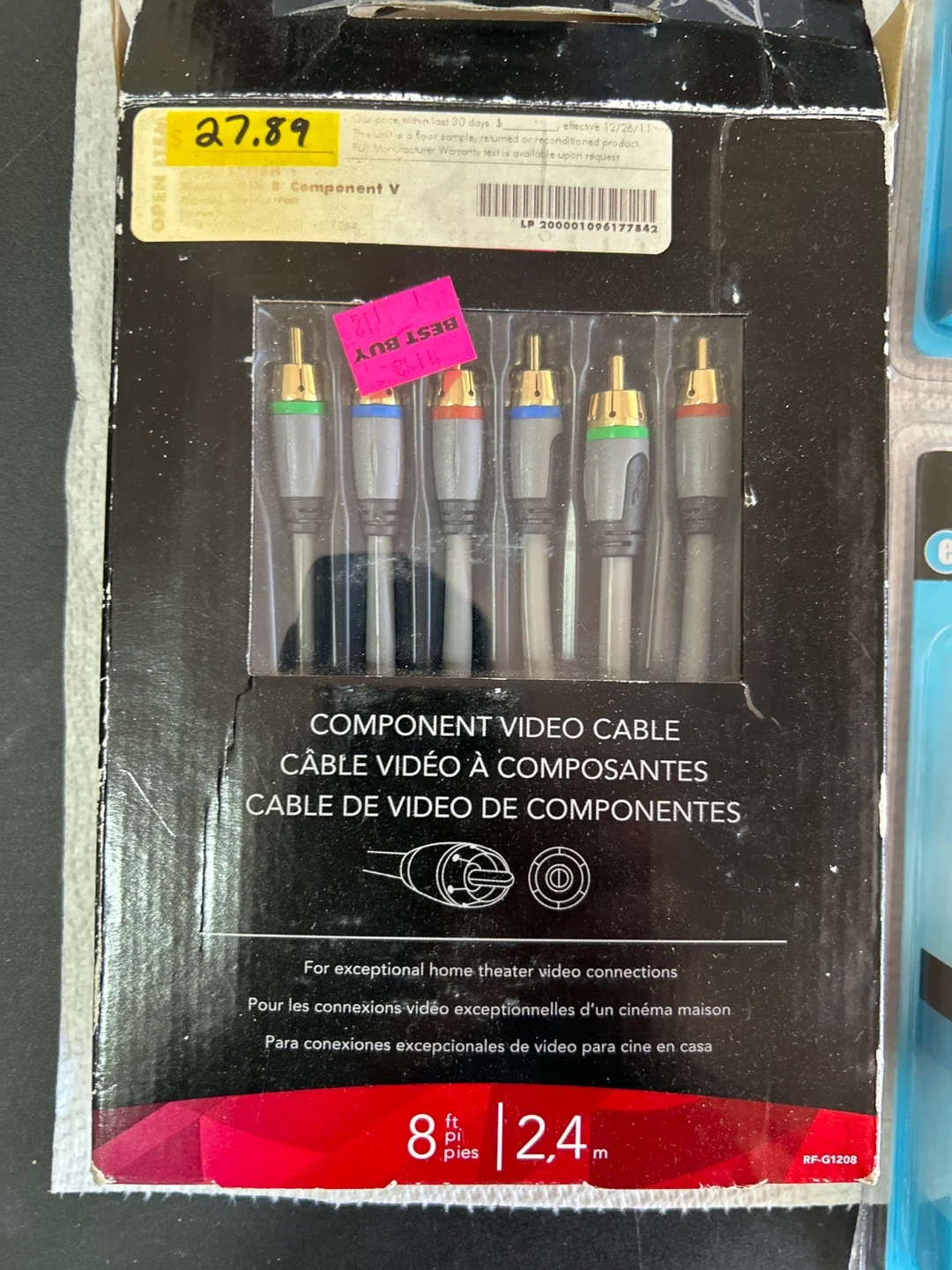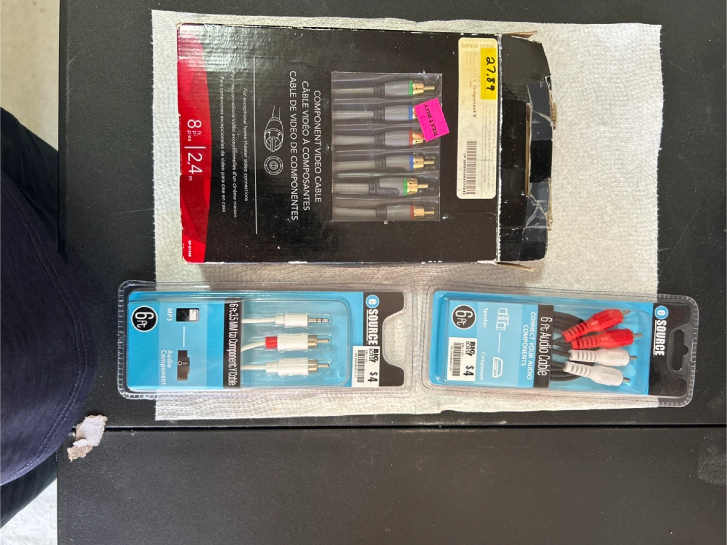 100Selling a component video cable along with two 6ft audio cables from The Source. They're perfect for setting up your home theatre system! The component video cable is 8ft/2.4m. All cables are brand new and still in their original packaging