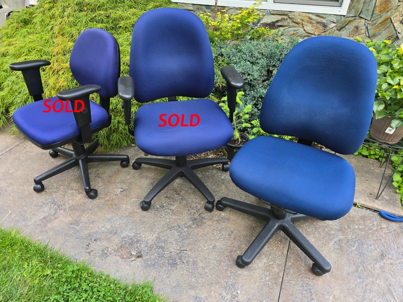 In excellent condition and very comfortable home office or work office chairs with nice blue fabric as shown. 2 left Asking $100 obo for both. Just 1 cost us more then $200 a few years ago.