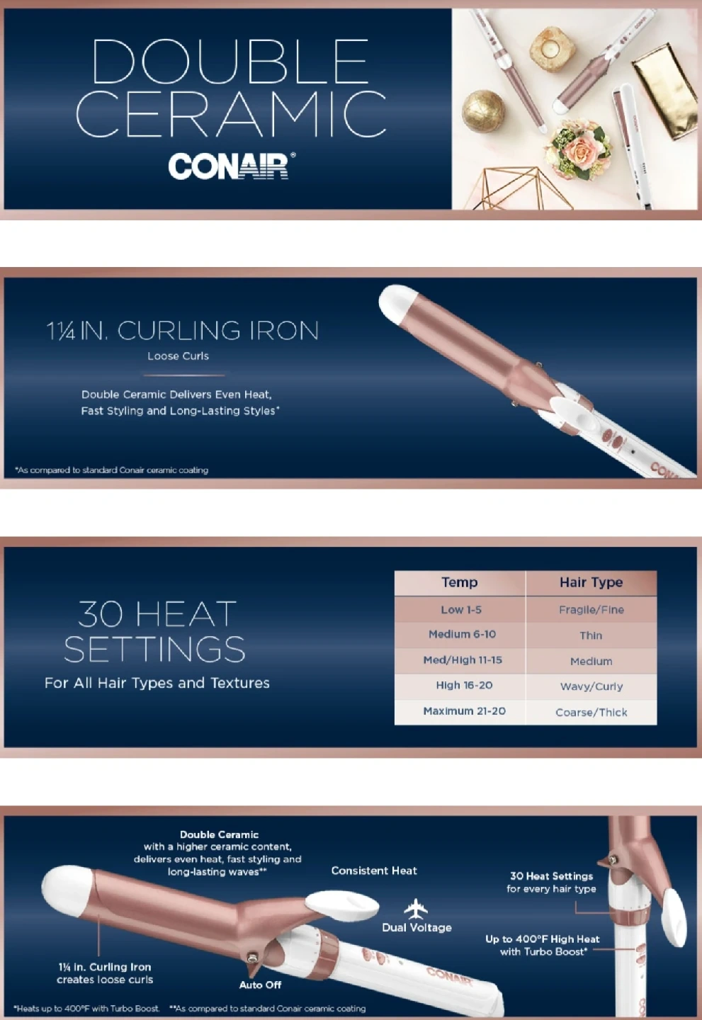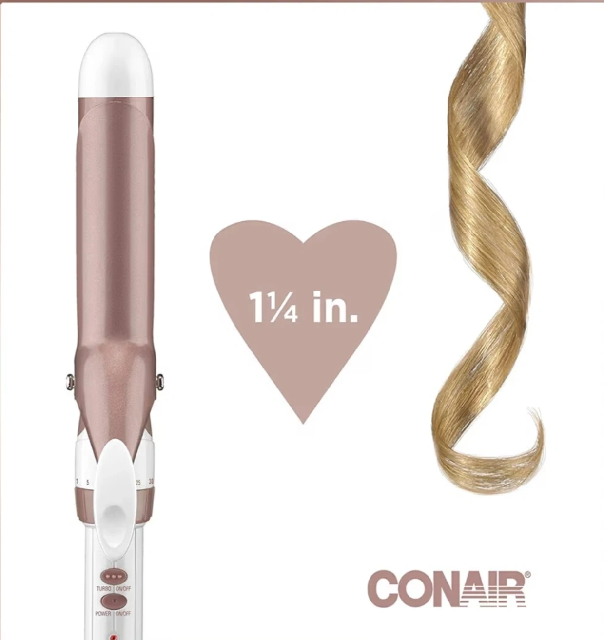 92I'm selling a brand new Conair Double Ceramic curling iron! It features a 1 1/4 inch barrel, perfect for creating loose curls. It heats up instantly and can reach up to 400°F with Turbo Boost. There are 30 heat settings to choose from, and it comes in its original packaging