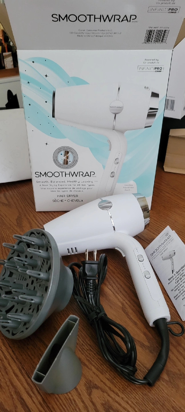 75Selling a Conair Infiniti Pro Smoothwrap hair dryer! It's in great condition and comes with all the attachments and the original box. This hair dryer is designed to dry hair fast and is lightweight, making it super easy to use. It also increases performance levels, leaving your hair feeling smooth and looking healthy!