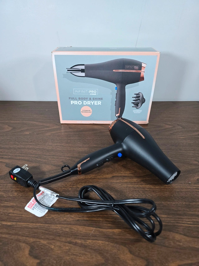 FOR SALE: USED CONAIR INFINITIPRO 1875W HAIR DRYER – STILL POWERFUL & RELIABLE! **Features:** ✔ 1875 Watts of Power – Dries hair quickly and efficiently ✔ Ceramic Technology – Helps distribute heat evenly to reduce damage ✔ AC Motor – Long-lasting performance ✔ Multiple Heat/Speed Settings – Customizable drying experience **Condition:** **Used** – Shows signs of wear & tear (cosmetic scratches, no major damage) **Fully Functional** – Works perfectly, no heating or airflow issues **Includes:** Hair dryer only (no attachments) Pickup in Stratford Smoke-free/Pet-free home Checkout other listings for more items