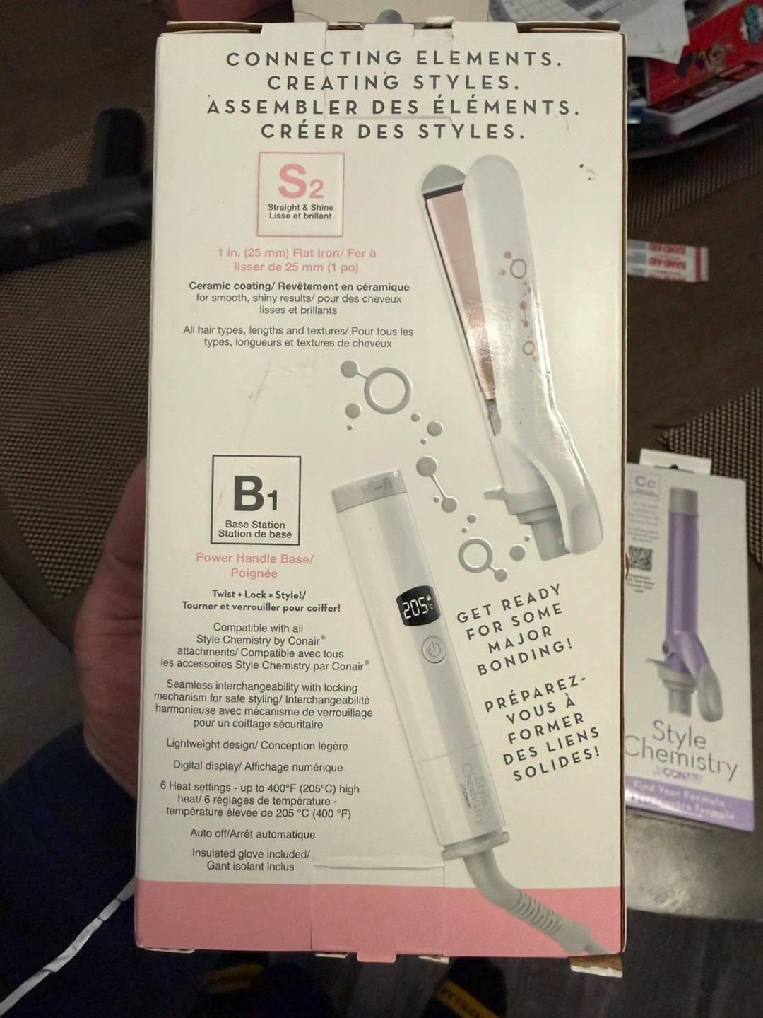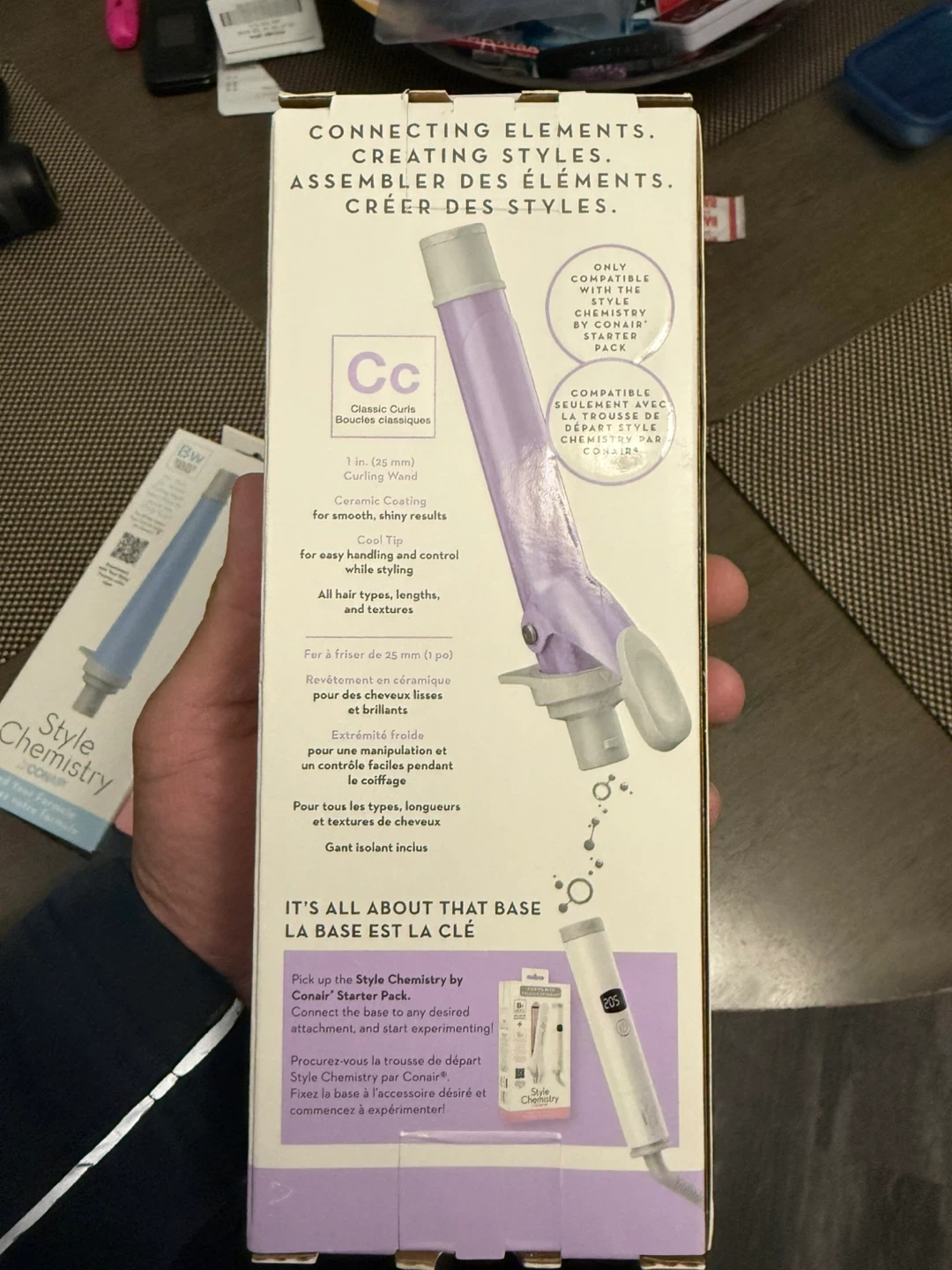 60Selling a Conair Style Chemistry Starter Pack! It includes the base and three different attachments: -S2 Straight & Shine Flat Iron -BW Beachy Waves Curling Wand -Cc Classic Curls Curling Wand All attachments are compatible with the Style Chemistry by Conair base Brand new packed never used