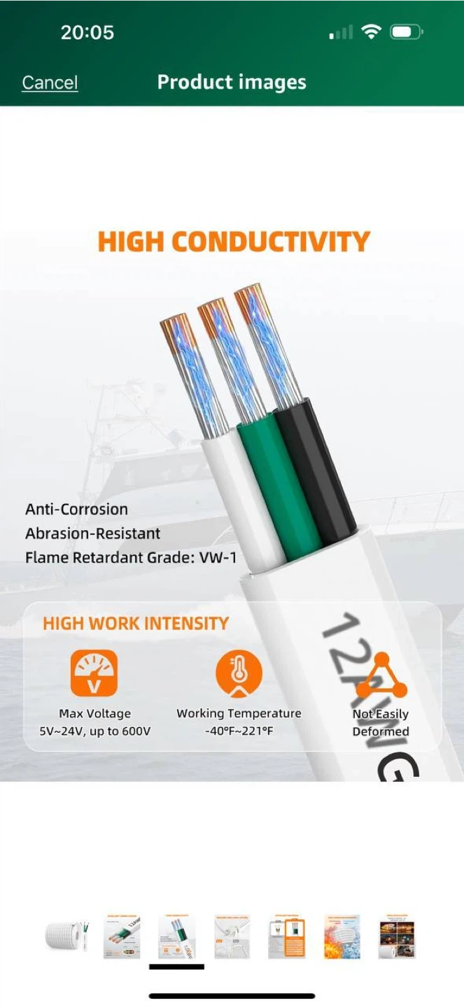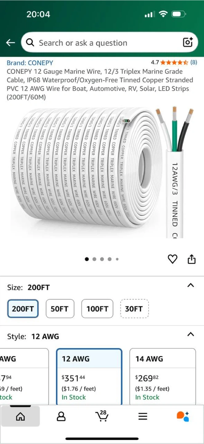 25🔌 CONEPY 12 AWG 12/3 Triplex Marine Wire – 193.6ft (Approx. 59m) ⚡️ Brand new, never used. Based on cable markings, total length is approximately 193.6 feet. High-quality marine-grade wire, IP68 waterproof, oxygen-free tinned copper, perfect for boats, RVs, solar, automotive, and LED setups. Heavy-duty PVC jacket, 600V rated. 💰 Price: $240 📍Pickup in Waterloo (delivery possible) ✅ See my other listings!