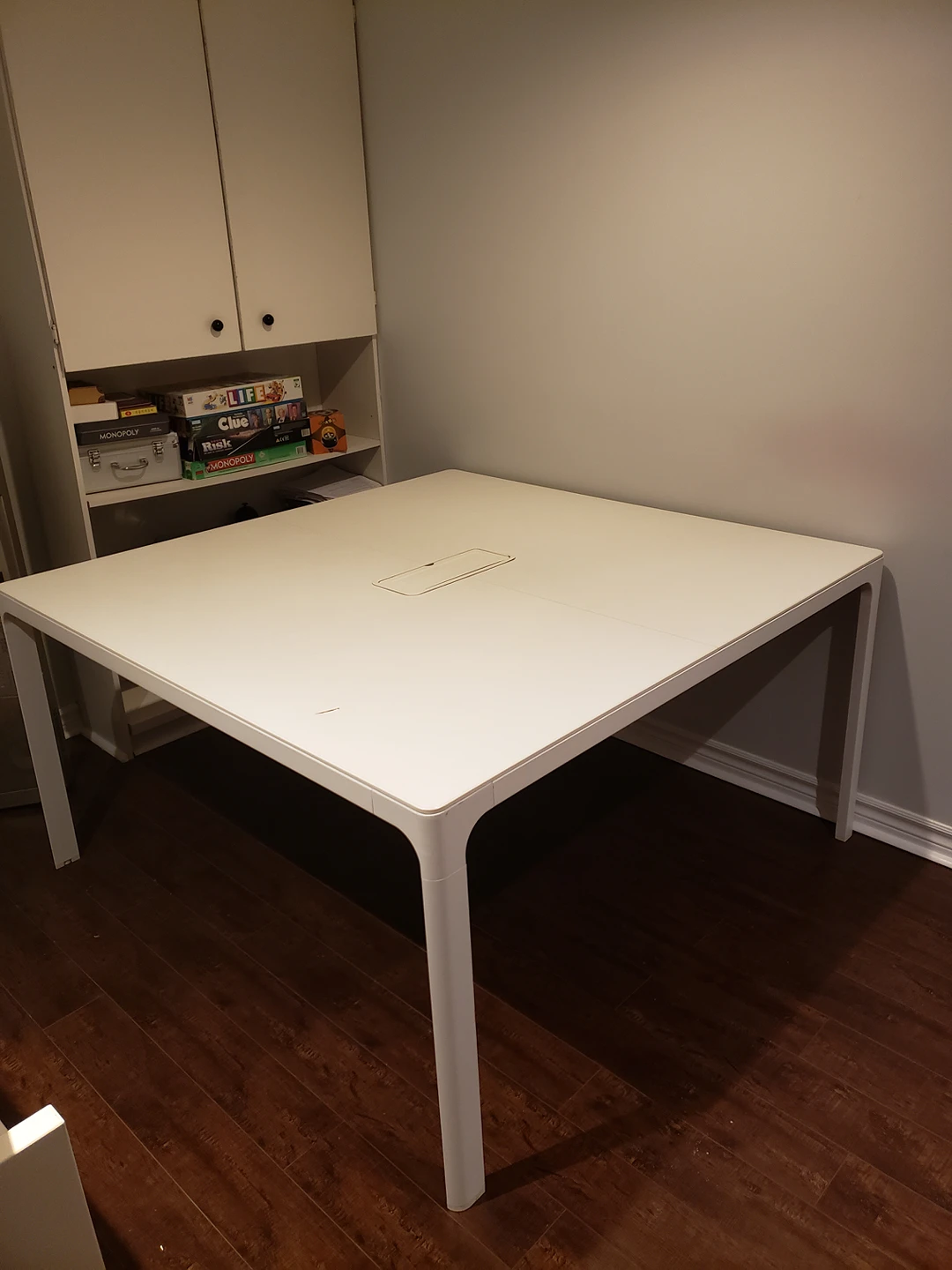 13Ikea conference table. there is a very small bump mark on the side as shown in the photo but other than that its in great condition. size 1m40cm x 1m40cm pickup only ( Bayview and Cummer) you need 2-3 strong men. bring your manpower