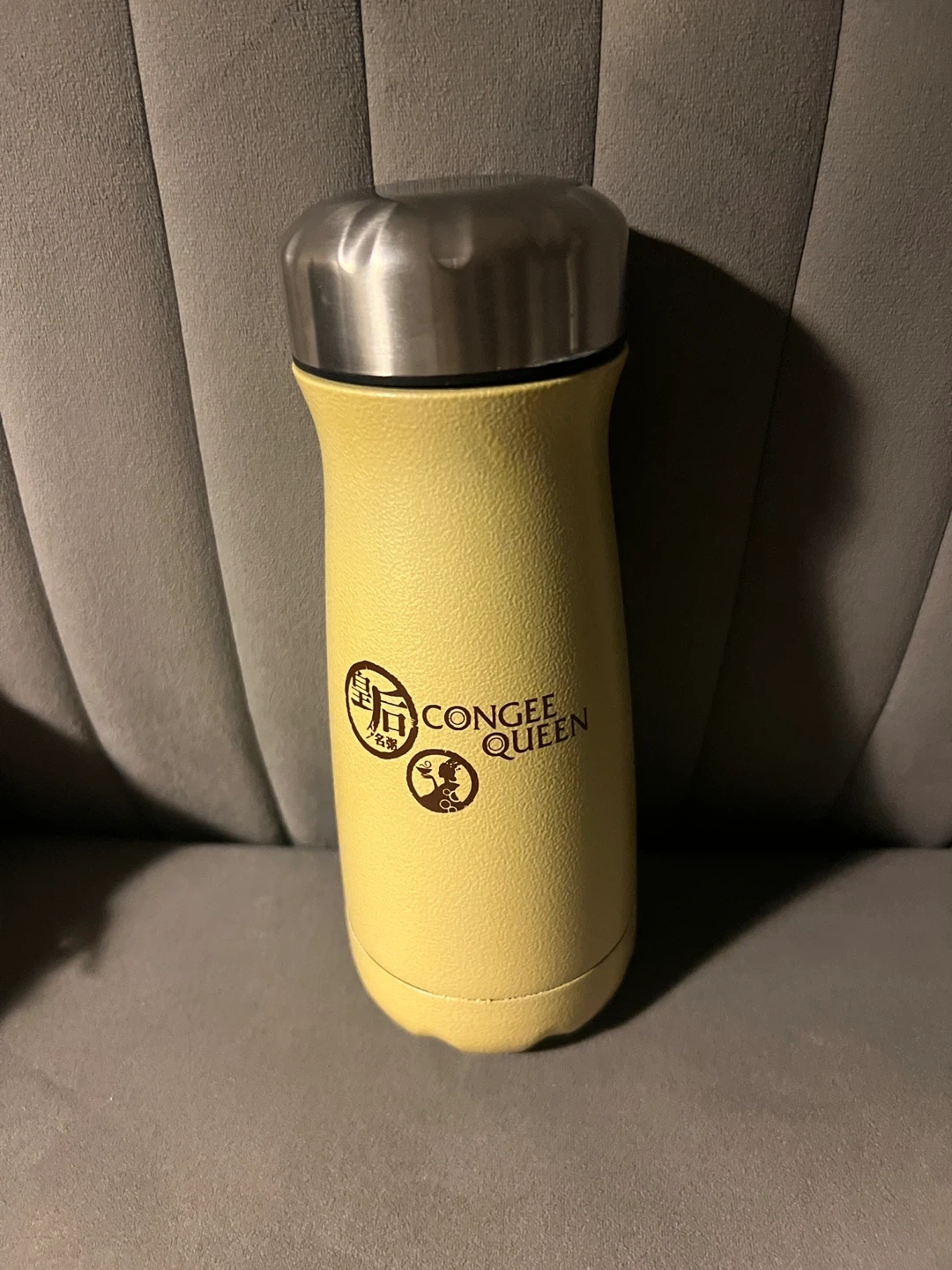 283Yellow thermos from Congee Queen! It's brand new and perfect for keeping your drinks hot or cold on the go. The box is available and took it out for the photo