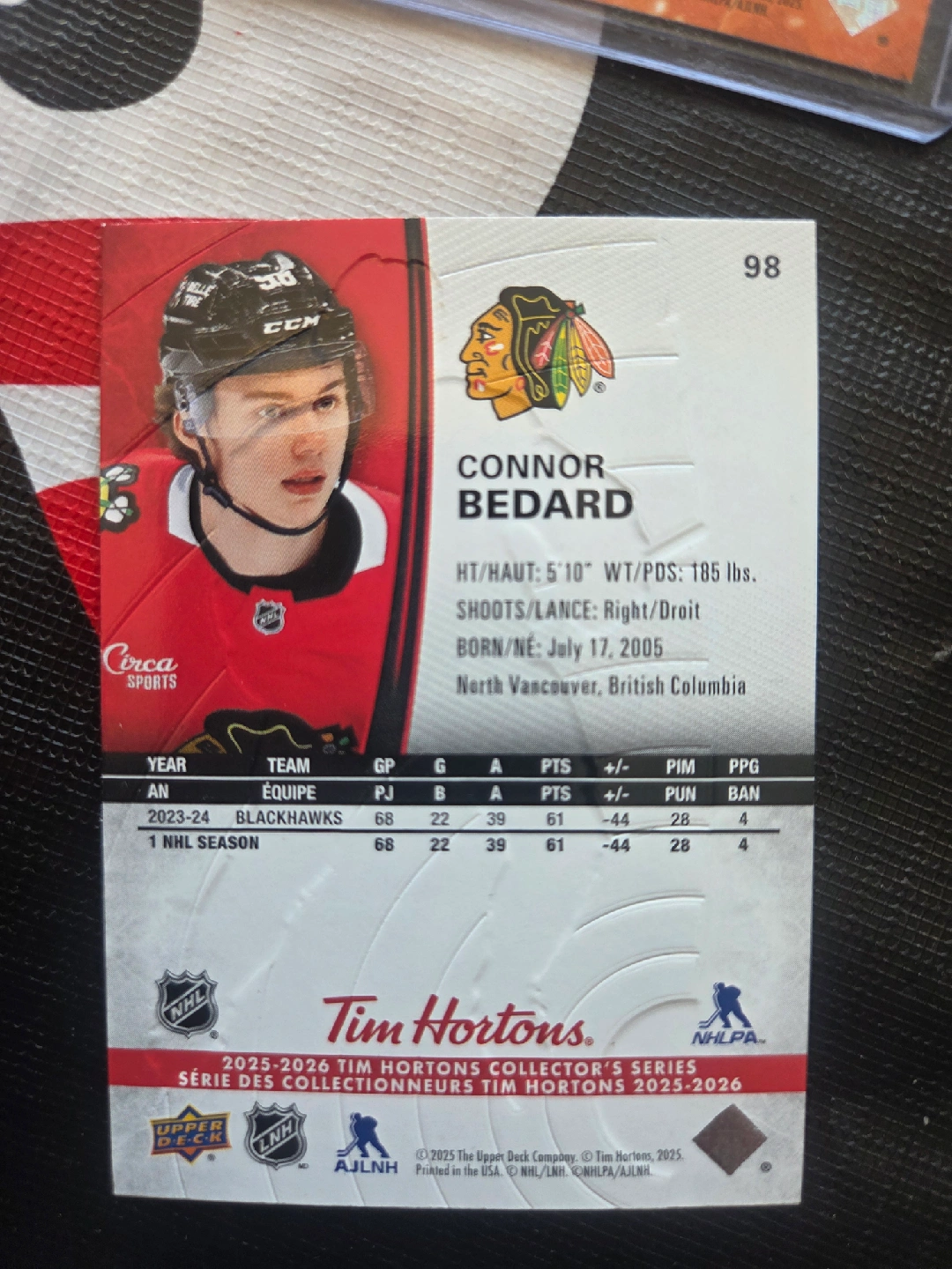 10Selling a Connor Bedard hockey card from the Upper Deck Tim Hortons 2025-2026 collector's series