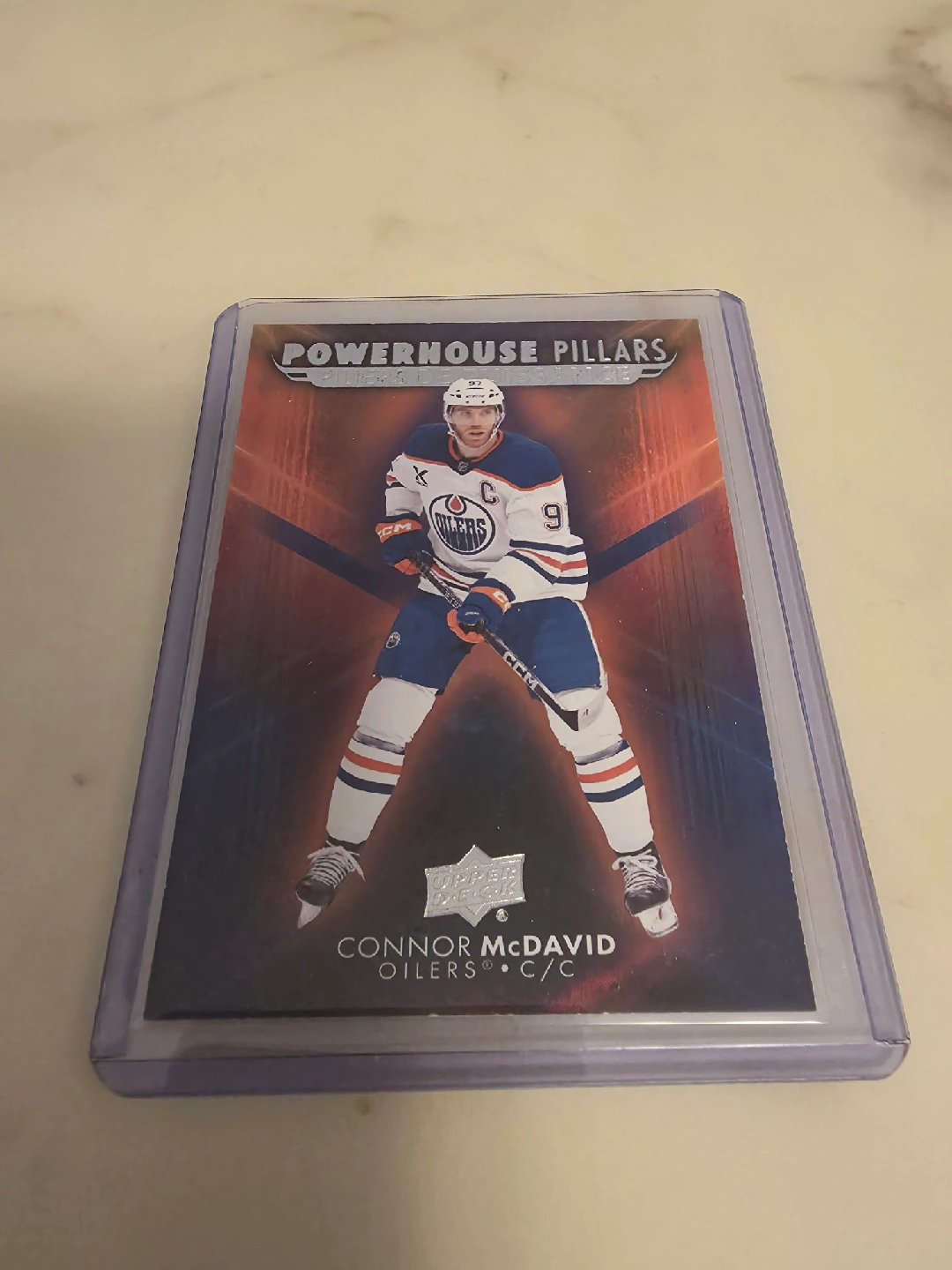 60Selling a Tim Hortons Connor McDavid Upper Deck Powerhouse Pillars hockey card! It features Connor McDavid of the Edmonton Oilers.