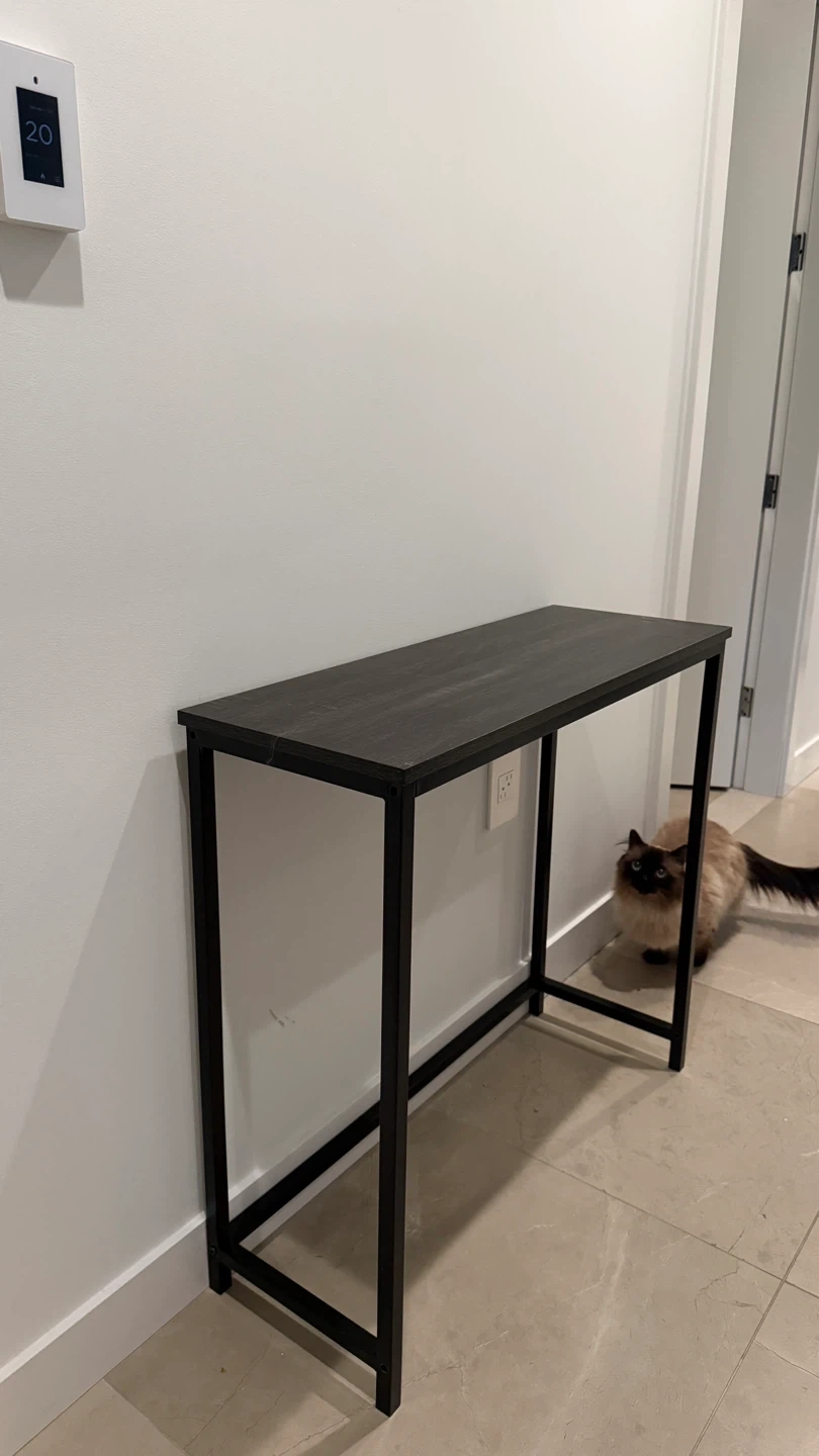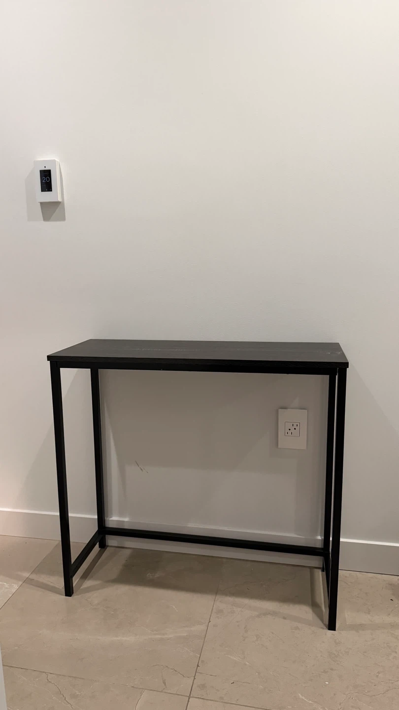 60Selling a console table with a black wood grain finish. It's in great shape and would be perfect for an entryway or hallway! It has a minimalist design that fits well in any space