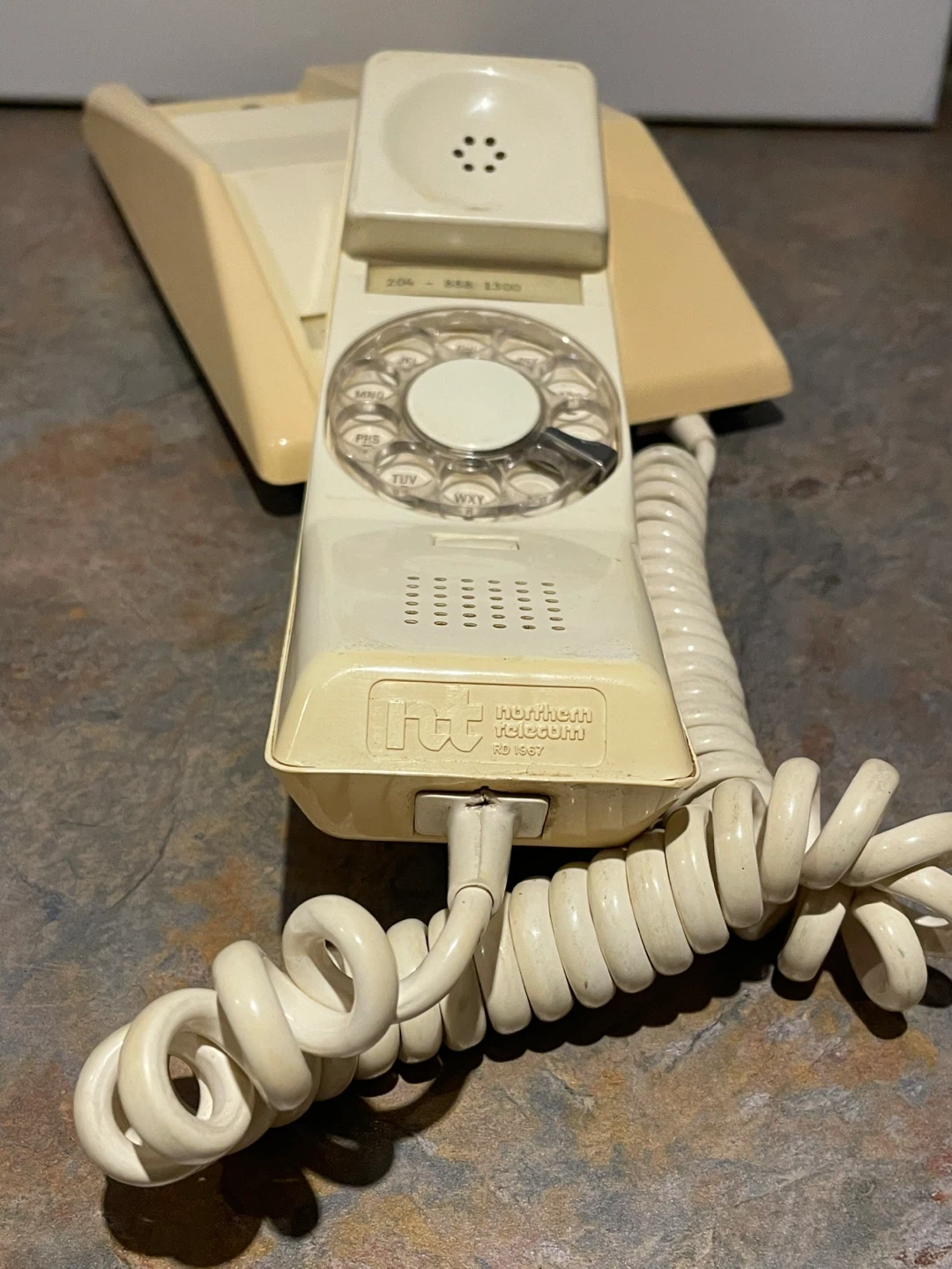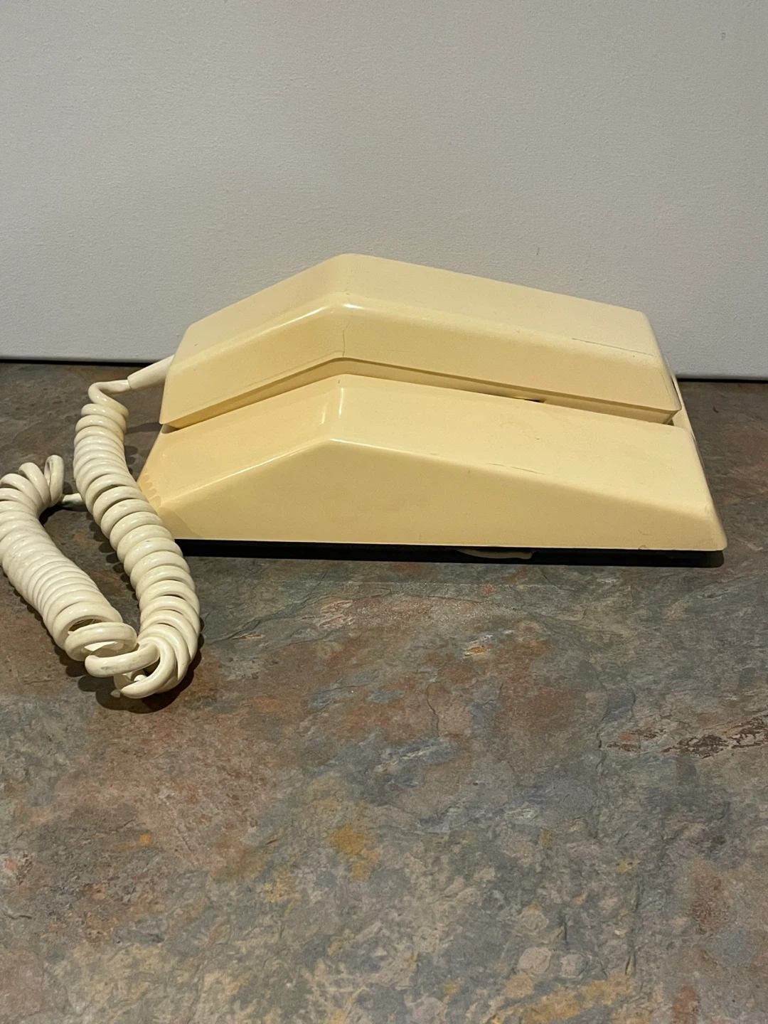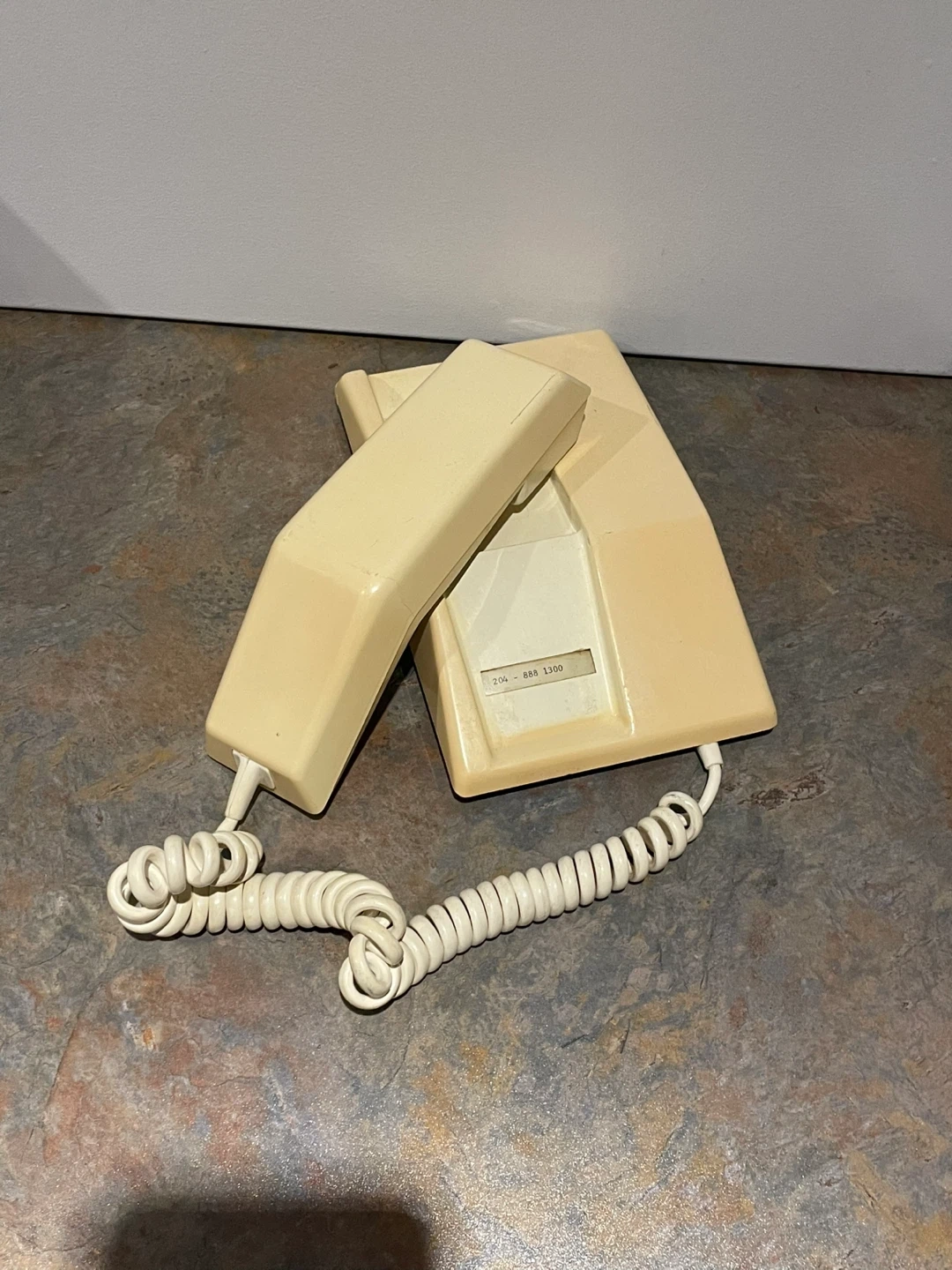 31What a conversation piece! Not sure if it works - selling as is. The Contempra was the first telephone designed in Canada and was a significant departure from the American designs that had been used previously. Its design was notable for its angular shape, with the dial located in the handset rather than on the base. The phone was available in a wide range of colors to match 1960s interior design trends, and it was initially not available in black. It was a popular design that won awards and was featured on a postage stamp. Pick up in East Kildonan, cash please, no delivery