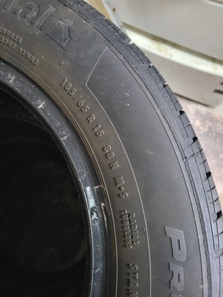 5Selling a set of Continental ProContact TX tires. The size is 185/65 R15.