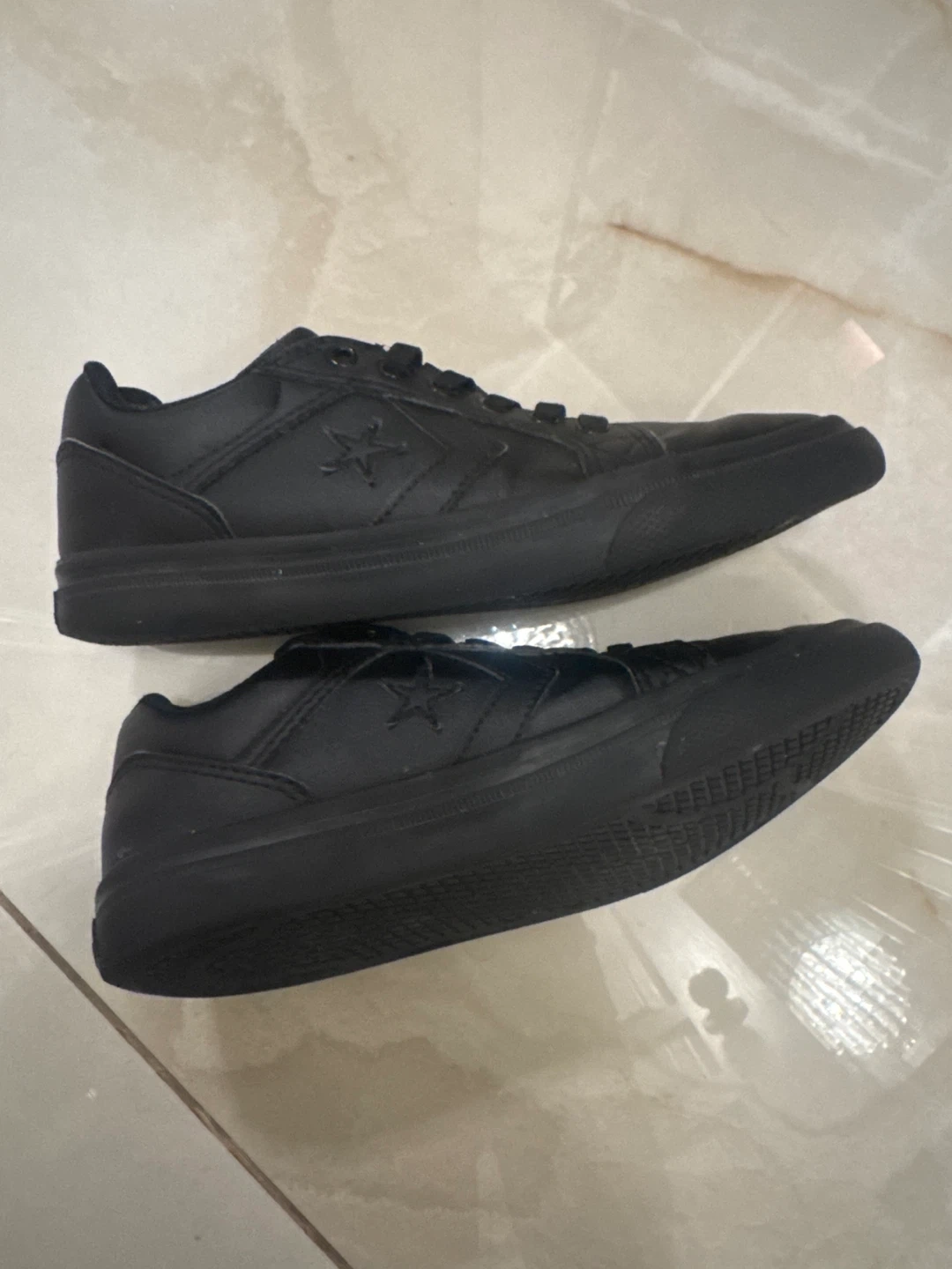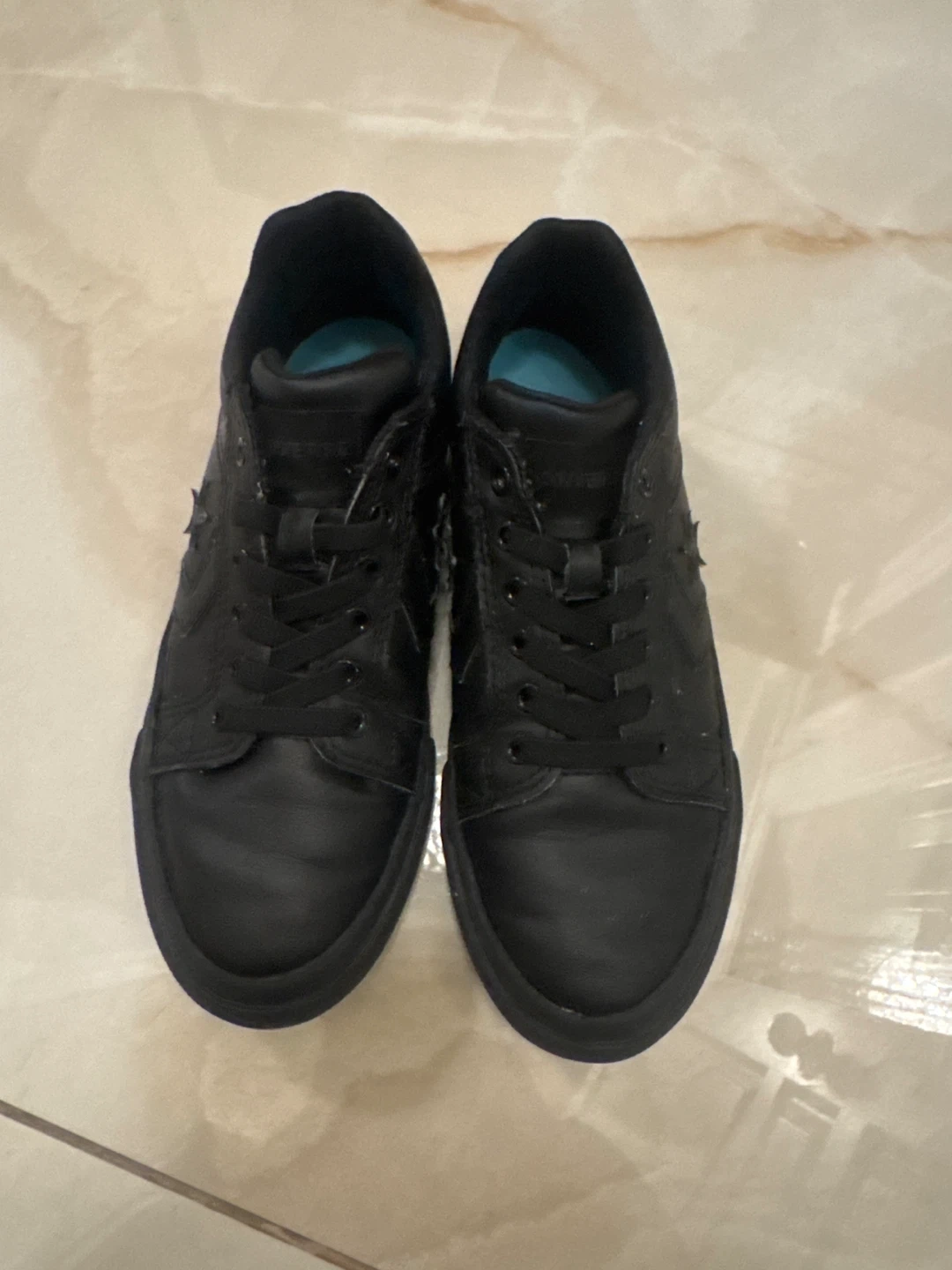 Selling a pair of black leather Converse sneakers. They're in good condition and ready for a new home!