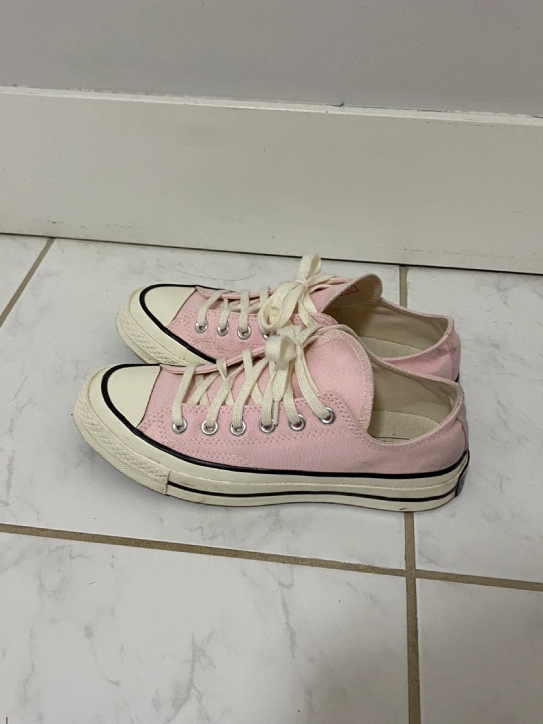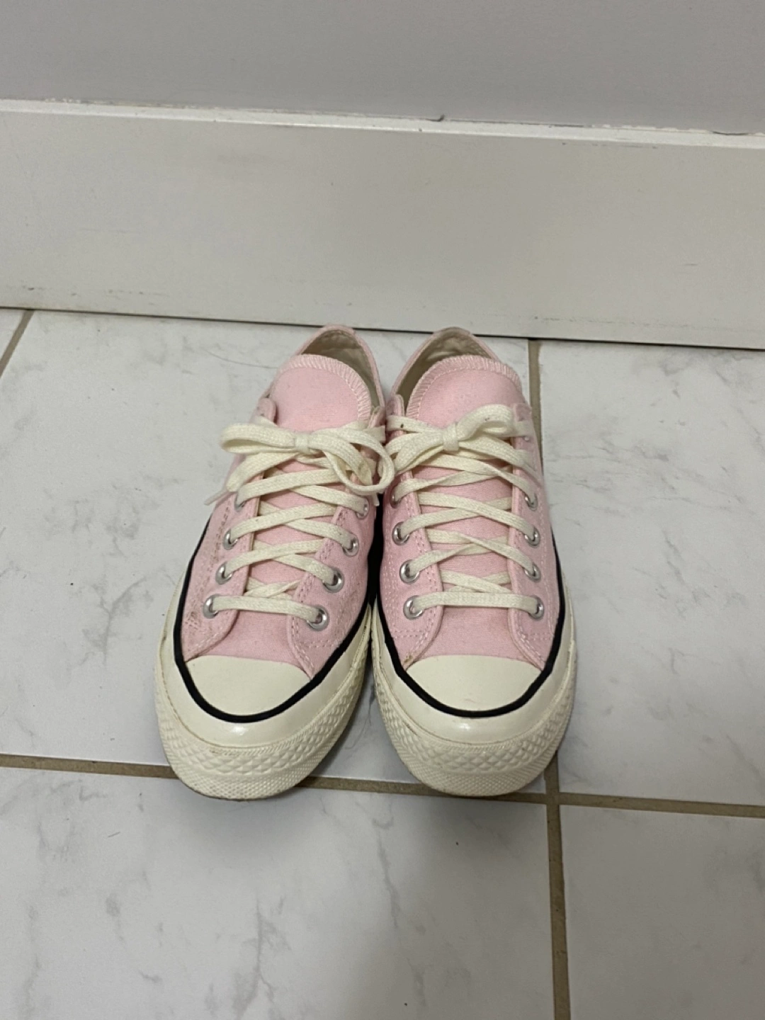 102Selling a pair of Converse Chuck Taylor All Star 70s Low in a lovely pink colour. I've only worn those about 3 times, but they feel a little bit big for me so I stopped wearing them. But the shoes themselves are so cute and still in a pretty nice condition! (You can check the details in photos :)) Size is 7 but slightly larger than standard so hope you check the exact size on online and have a good choice! :) I'd like to meet at Vancouver Public Library - Kensington Branch, but if our schedules match, we can meet at downtown as well. If you have any question about the shoes, feel free to message me! Thanks :)