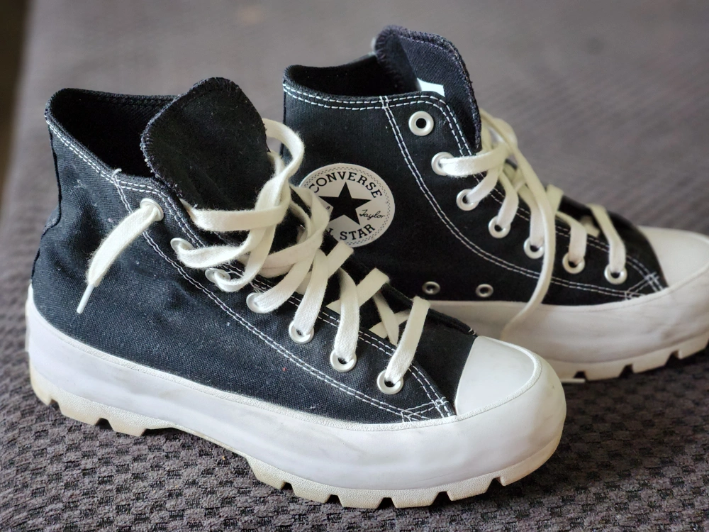 Selling a pair of Converse Chuck Taylor All Star Lift High Top sneakers! They are a women's size US 7. The upper and lining are textile, and the outsole is rubber.