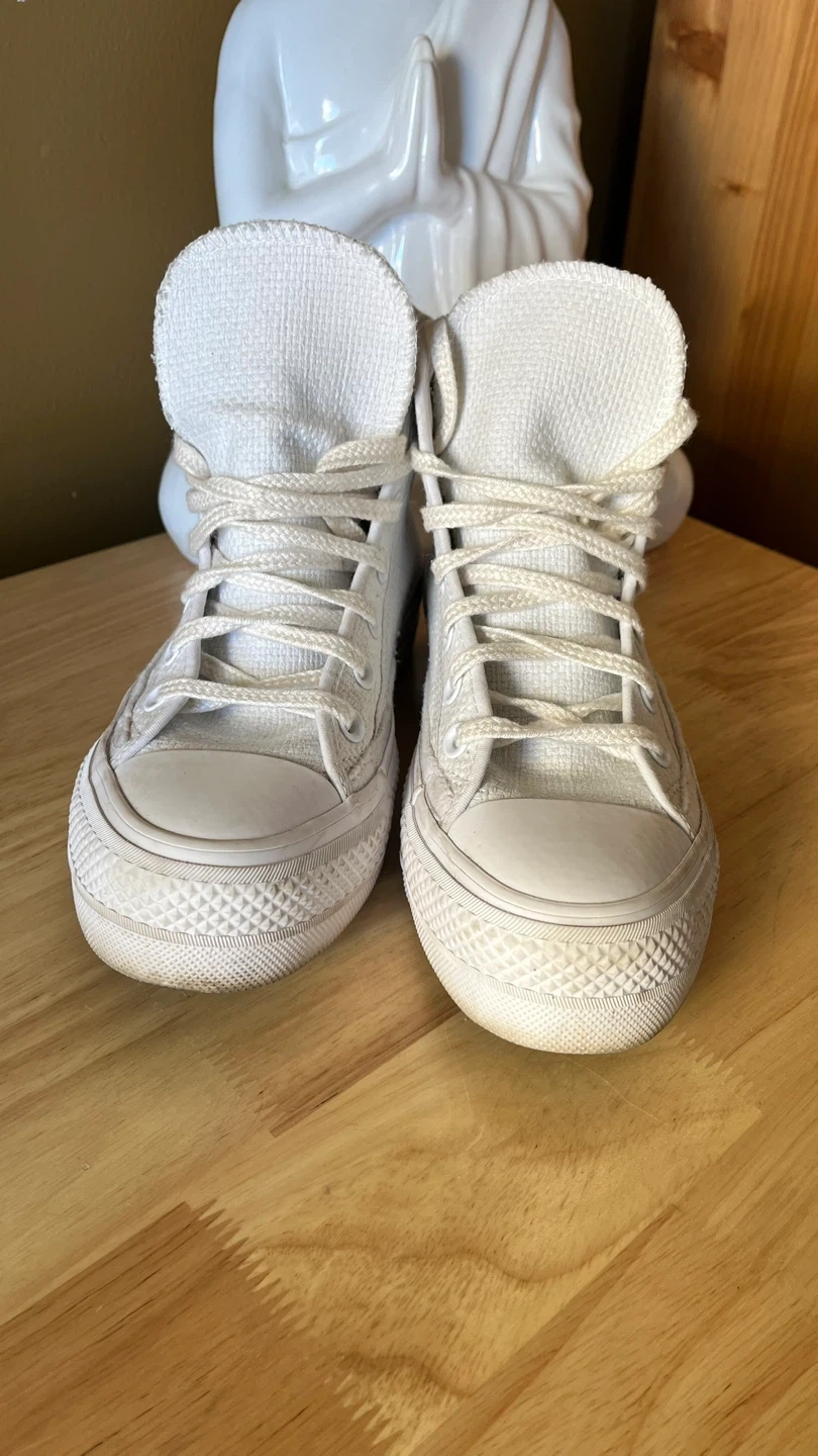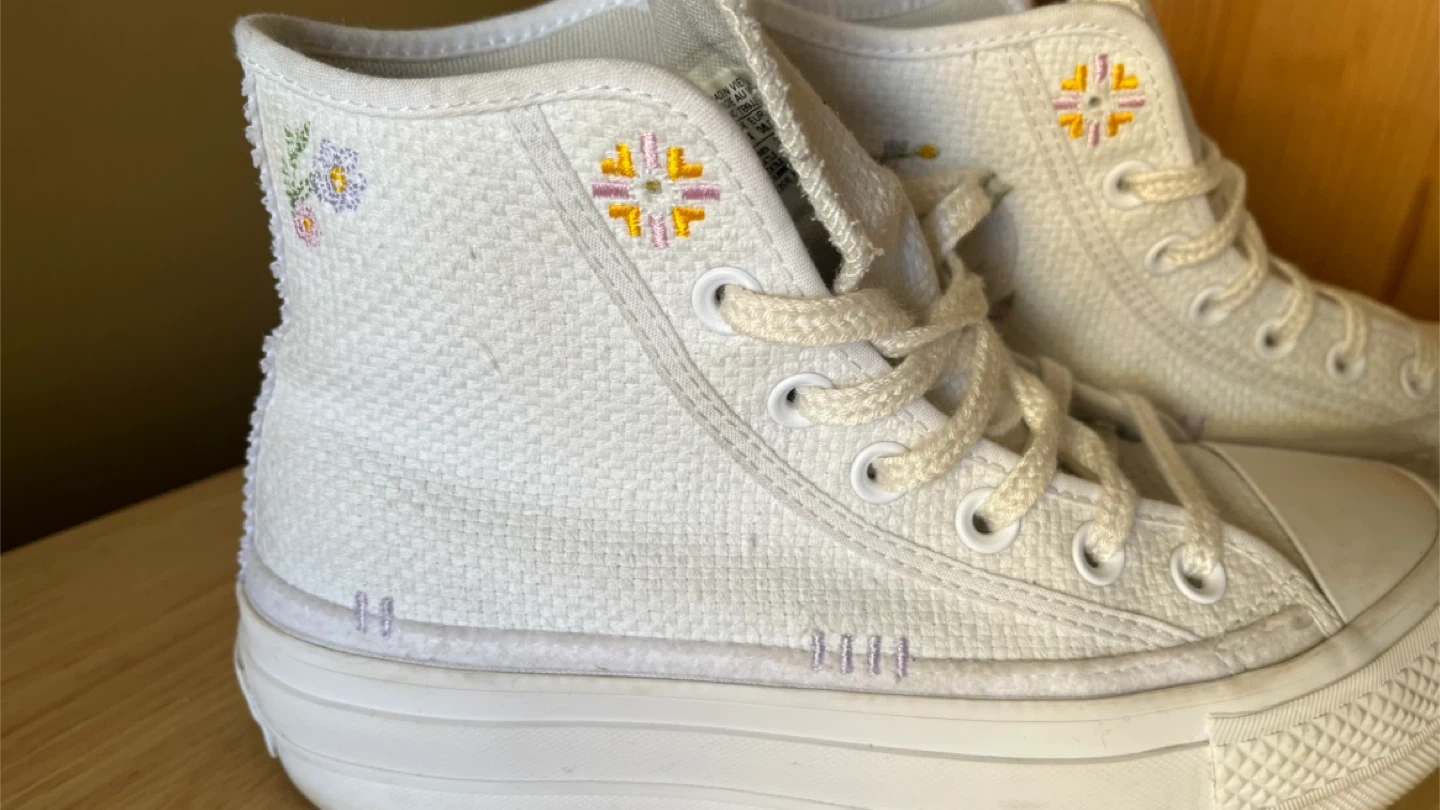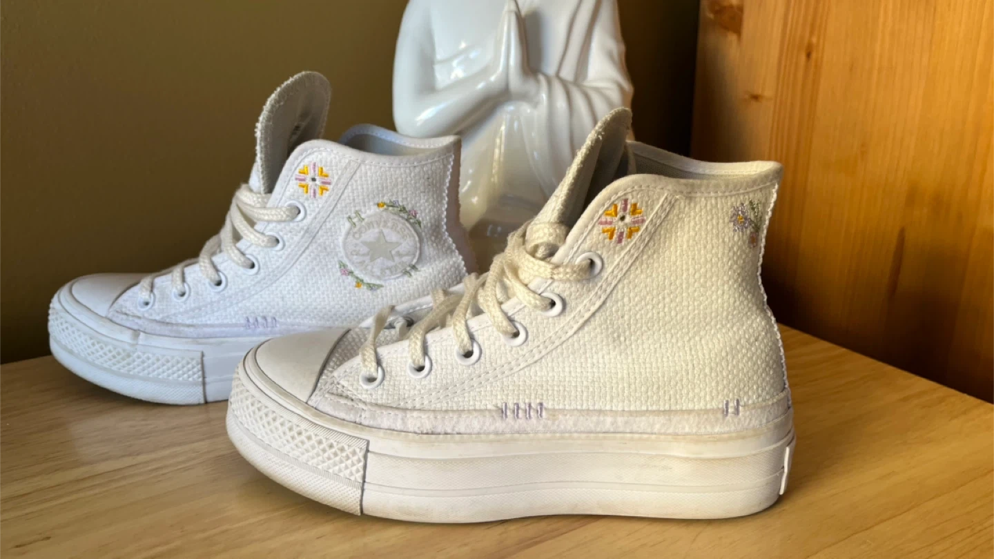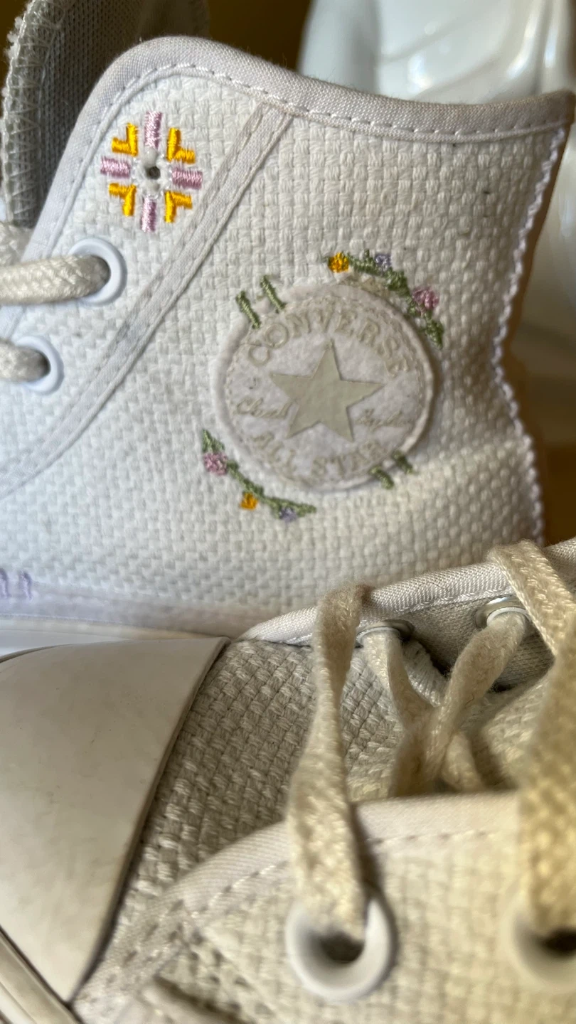 520Selling a pair of Converse Lift platform high top sneakers! They feature a beautiful embroidered design and are in good condition. These shoes are a stylish addition to any outfit!