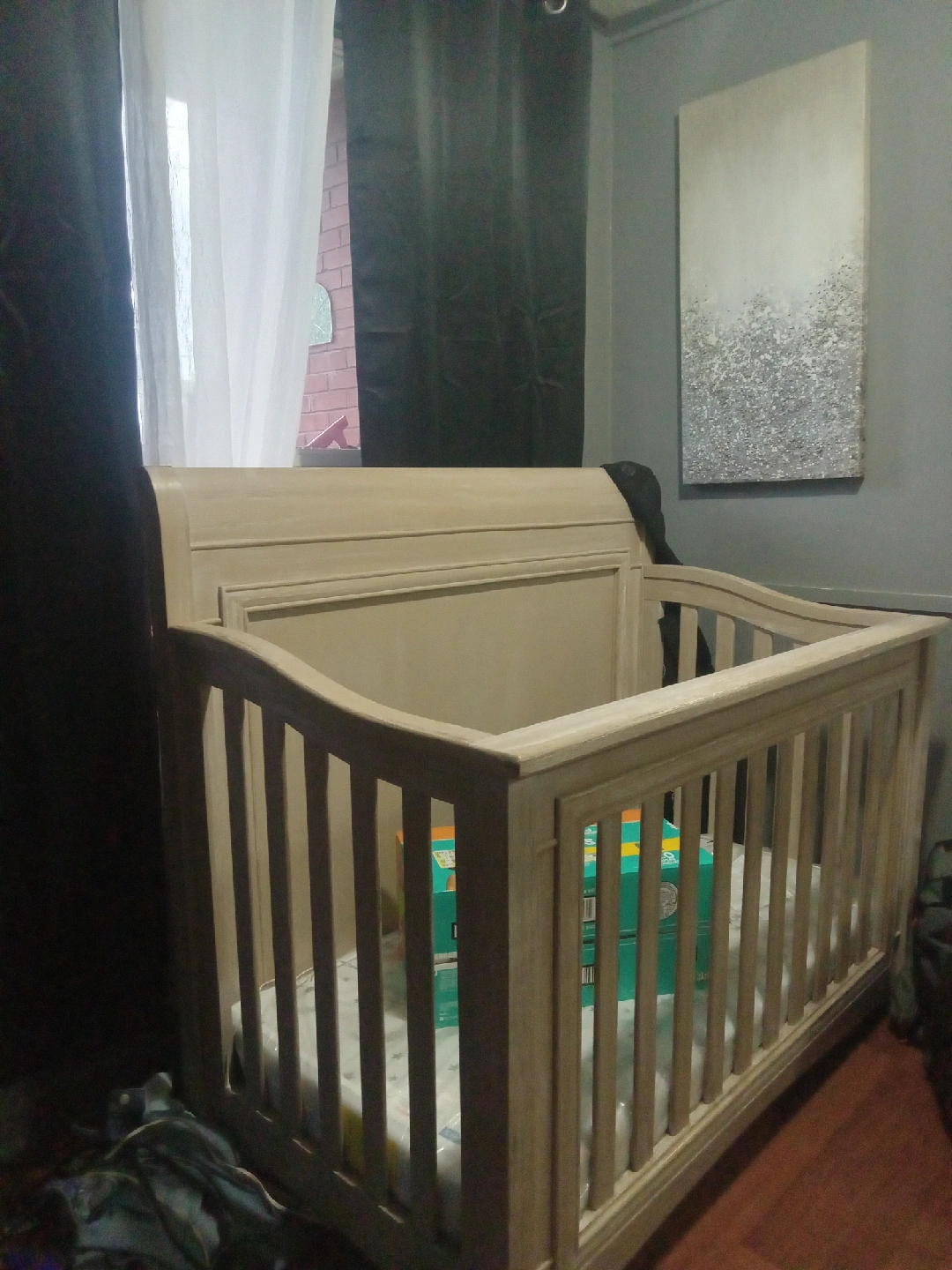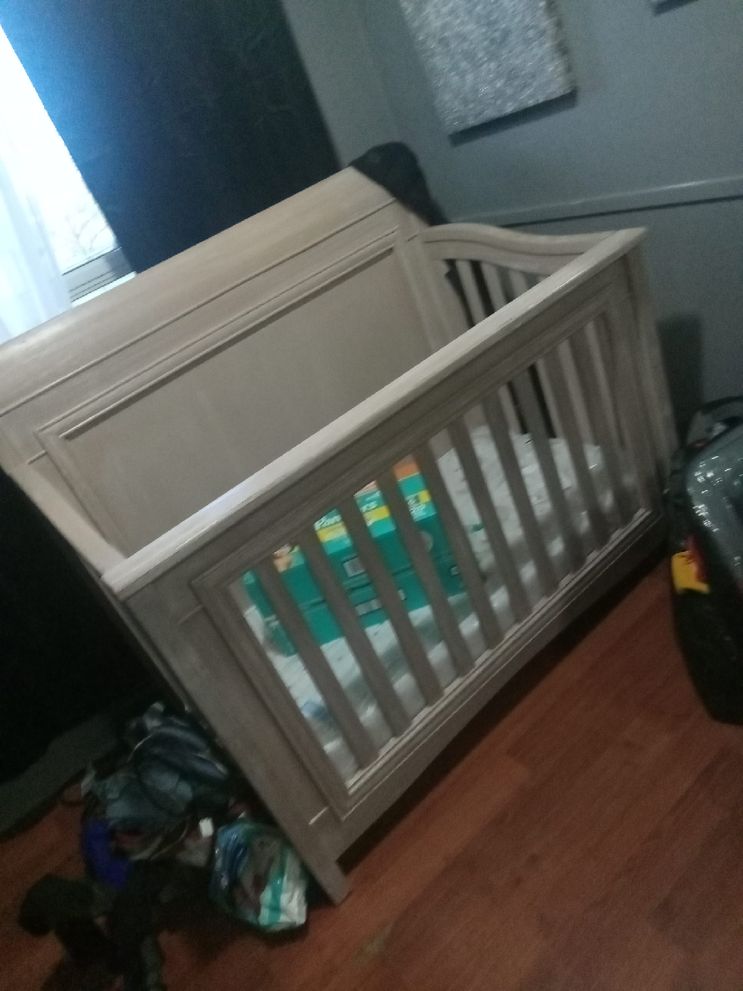 60Selling a convertible baby crib. It's in good condition and ready for a new home! The crib features a sturdy construction and a classic design that will complement any nursery decor. It's a versatile piece that can grow with your child, converting from a crib to a toddler bed. Mattress included