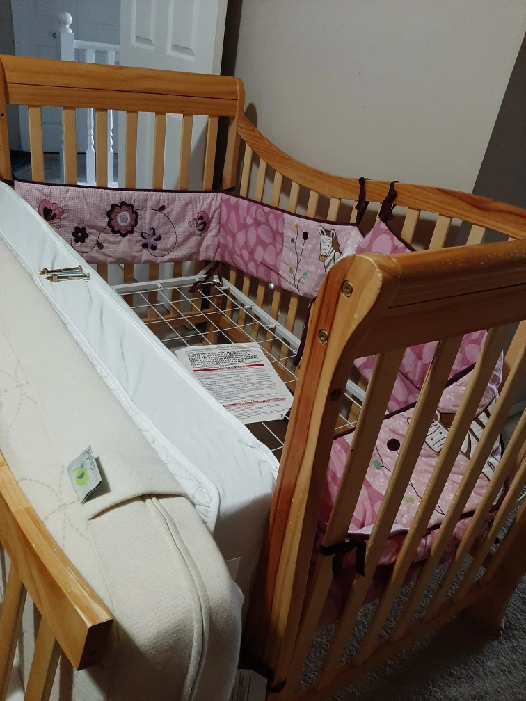 10This is a convertible crib. The mattress is included. There is a spring mattress support included, which can be removed when the crib is converted. The crib can be converted to a toddler bed. It is in good condition. The bedding is also included and is pink with an animal theme. matress is organic with no stains pick up chaparral se Pet and smoke free home