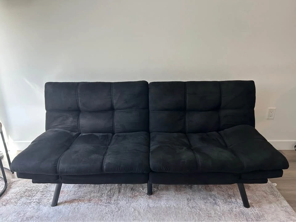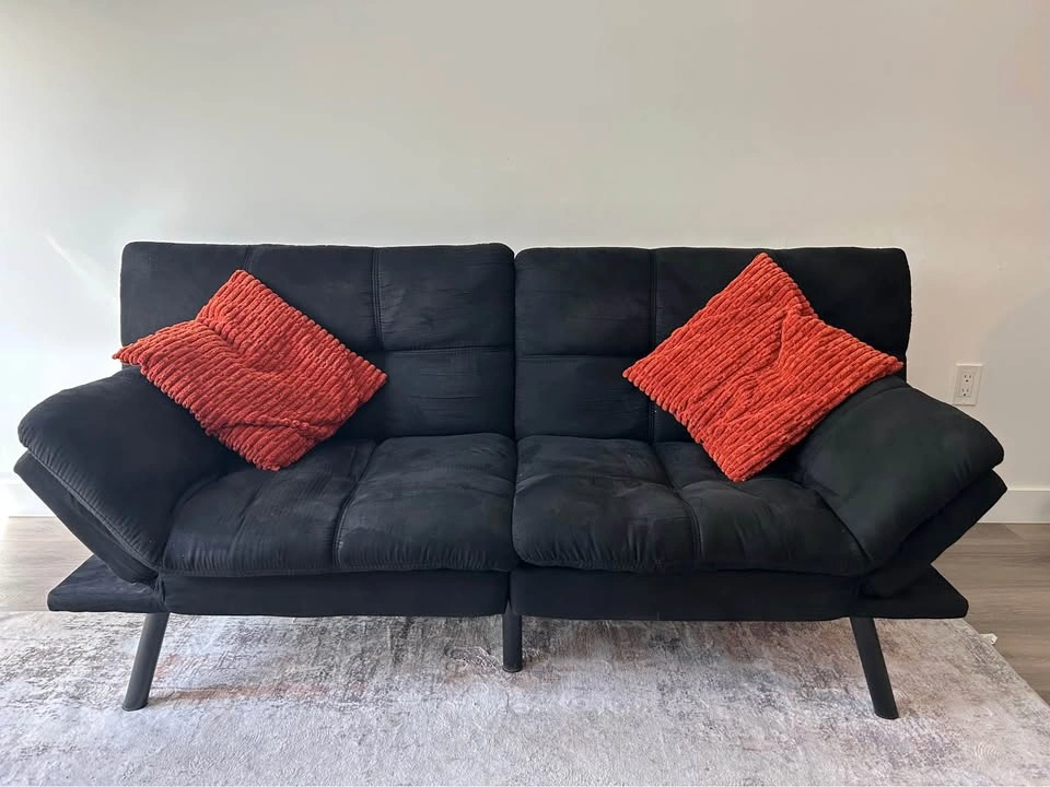 20We got this futon to serve as both a comfy couch and an extra bed for guests, and it’s done both beautifully. It folds flat into a full-length sleeping surface, and it’s honestly been way more comfortable than we expected. I’ve personally slept on it, and our guests have told us they slept well too. It's great for naps (especially when you're watching a movie!) The futon has a modern, neutral design, supportive cushions, and the fabric is easy to wipe down. Back and sides fold to different levels so you can come up with a custom setup for yourself! We’re also including two throw pillows with covers to complete the setup. It’s still in pretty good shape; slight wear but no stains! Great for apartments or a multipurpose guest room. 📍 Pickup near Scott Road Station, Surrey