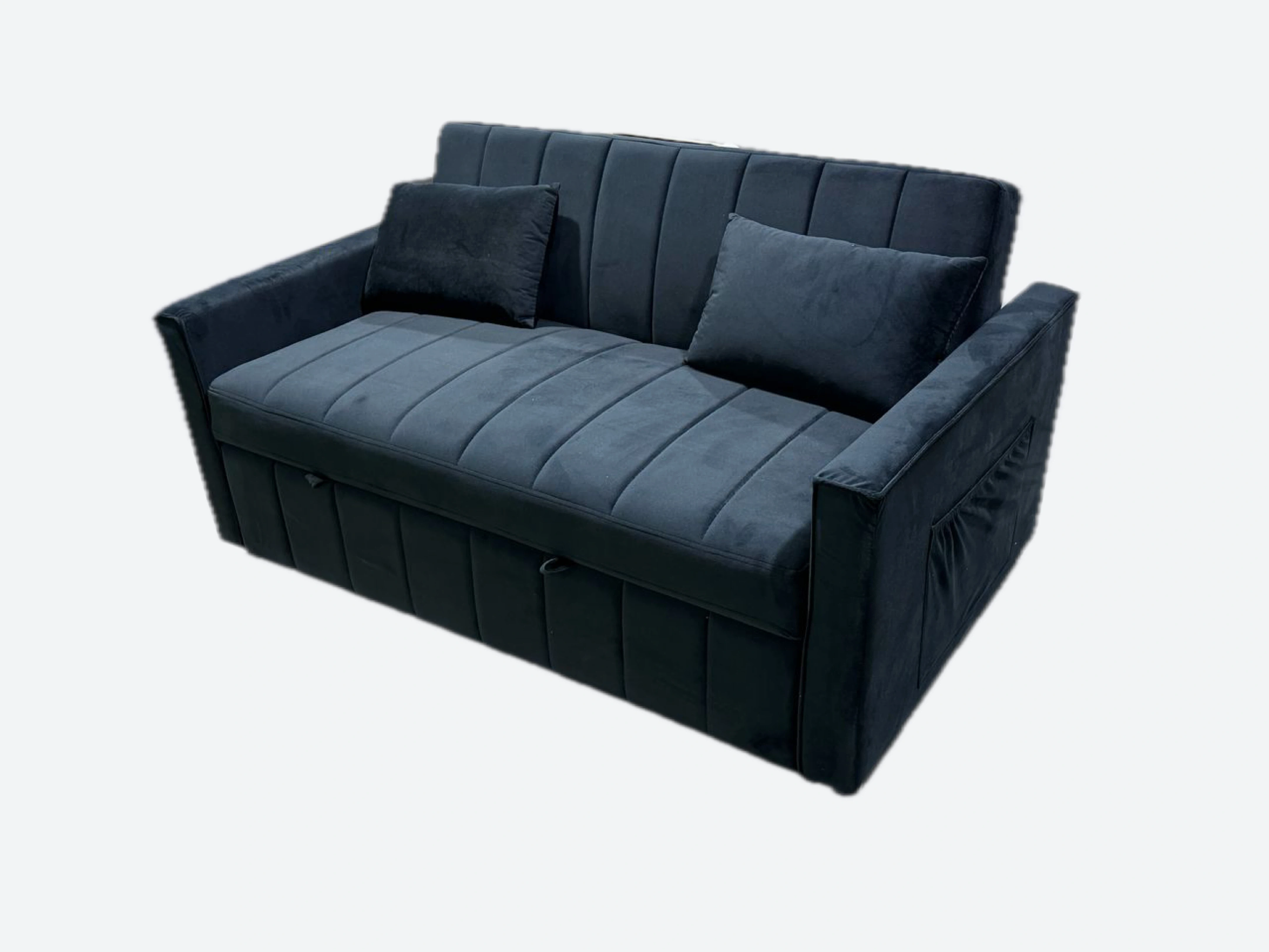 Selling a comfy convertible sofa bed that easily transforms into a bed! It comes with two matching pillows. Available in either white or grey, perfect for adding extra sleeping space for guests or creating a cozy spot in a small apartment