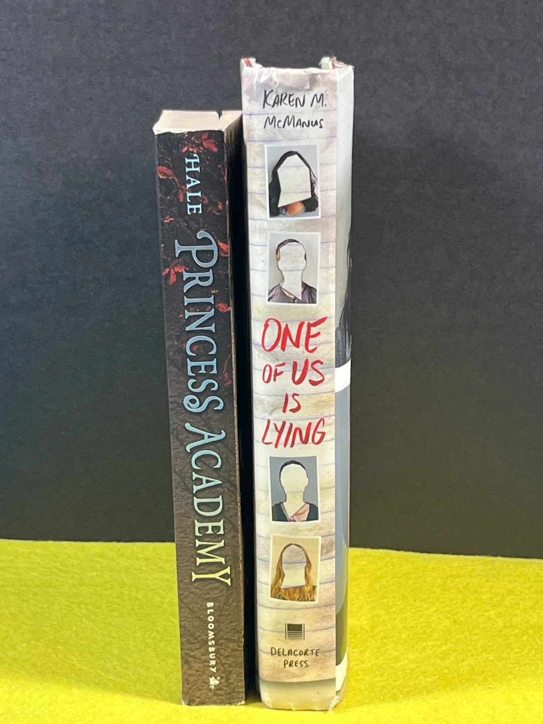 Get your hands on this intriguing pair of used books, including Shannon Hale's 'Princess Academy' and Karen M. McManus's 'One of Us Is Lying,' perfect for young adult readers! Both books have been previously enjoyed but are in good condition, ready to transport you to the magical land of Miri and the mysterious halls of Bayview High.