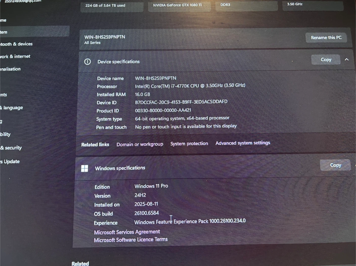 28Selling a PC tower featuring: - Intel(R) Core(TM) i7-4770K CPU @ 3.50GHz (3.50 GHz) - 16.0 GB RAM - NVIDIA GeForce GTX 1080 Ti - Windows 11 Pro (version 24H2, installed on 2025 August 11) It's in good working condition 200 - Firm