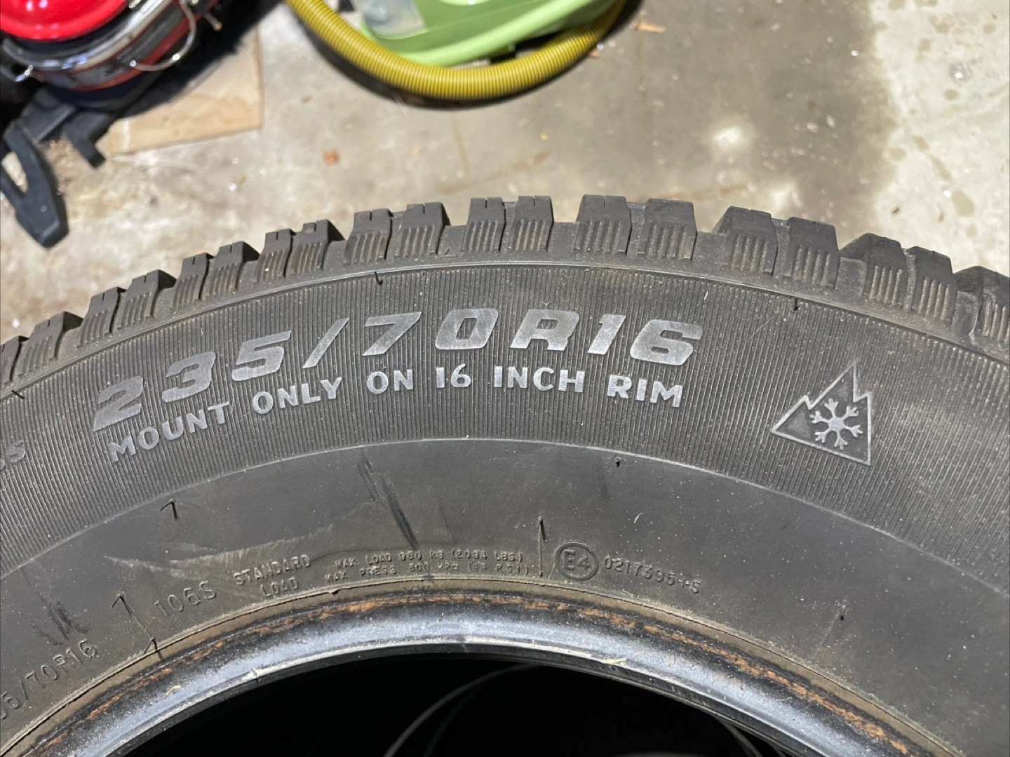 Selling a set of Cooper Discoverer M+S winter tires. The size is 235/70R16. They are meant to be mounted only on 16 inch rims. Great for winter driving!