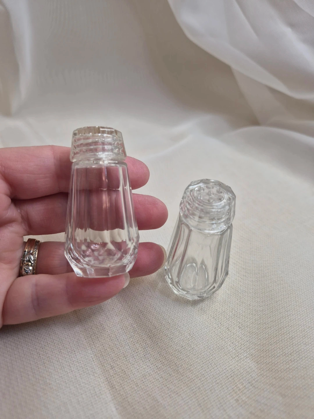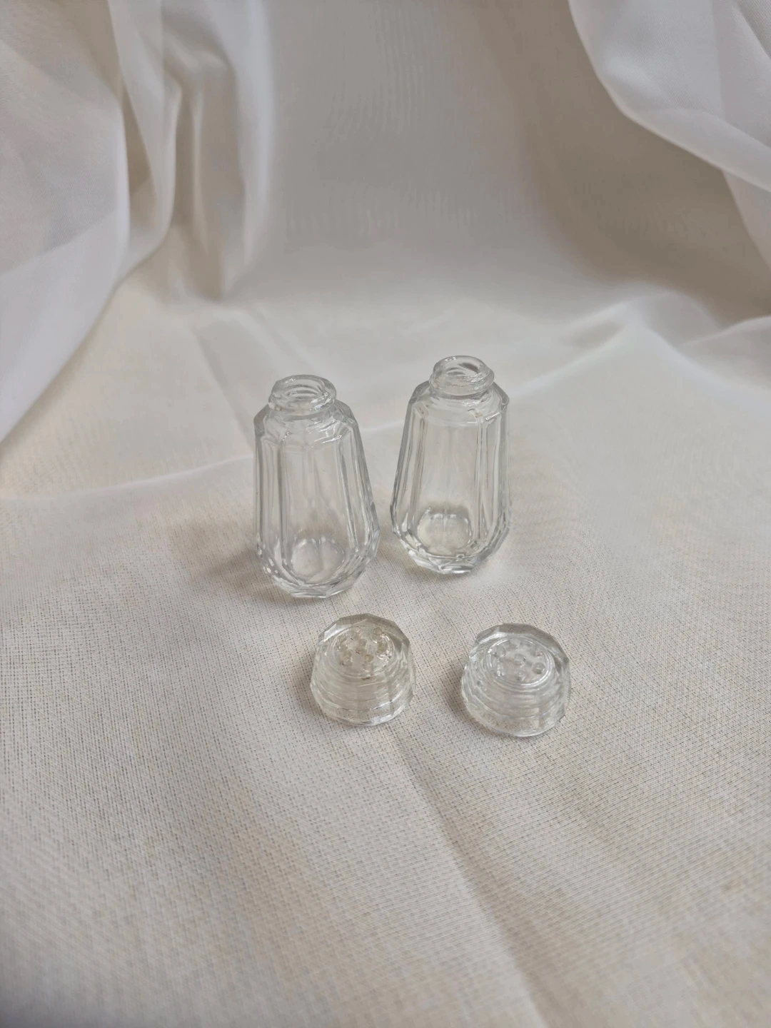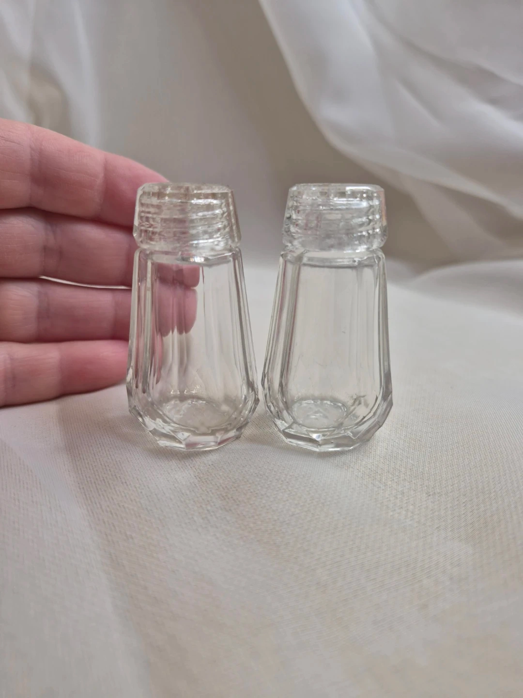 Cute Little Vintage 2 1/4" Glass Salt & Pepper Set Excellent Condition please see all pictures