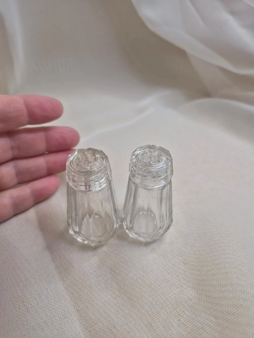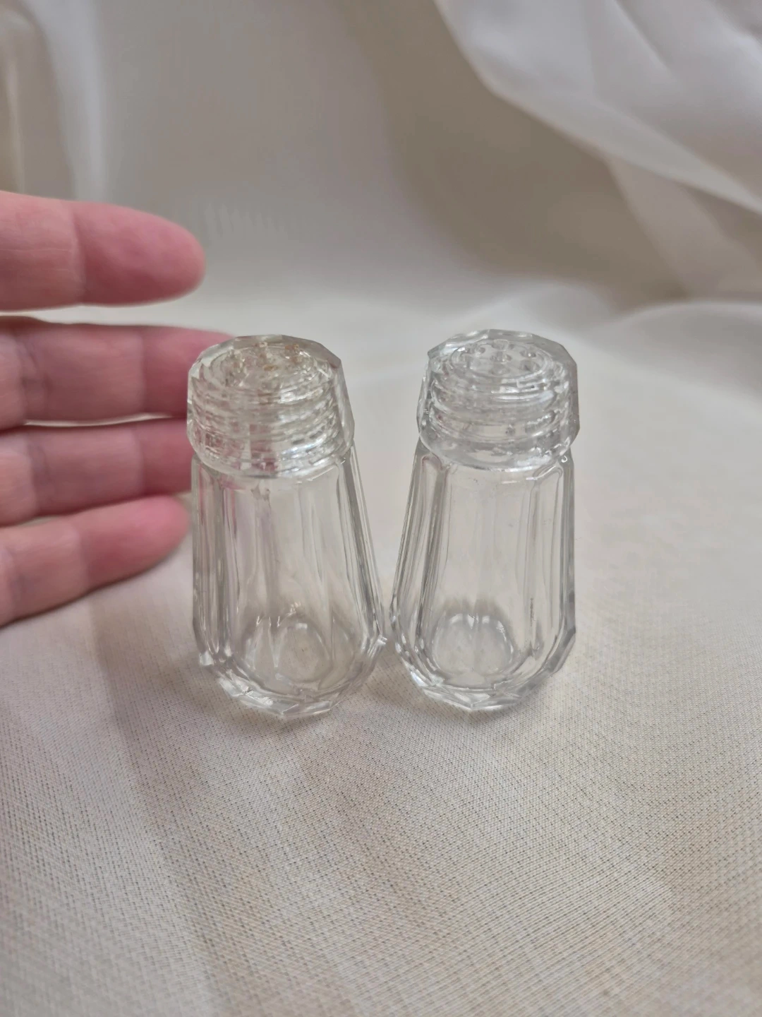 Cute Little Vintage 2 1/4" Glass Salt & Pepper Set