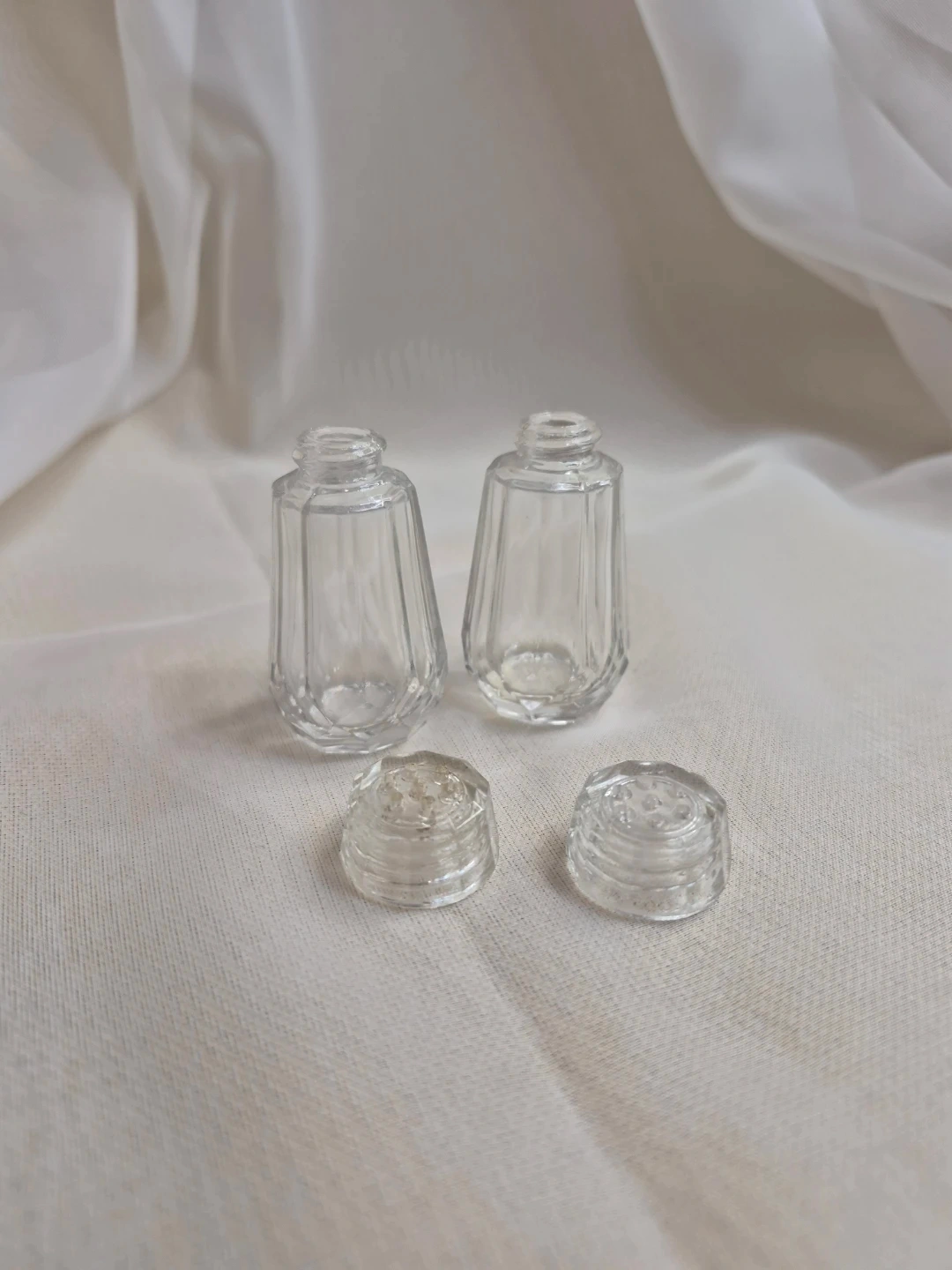 Cute Little Vintage 2 1/4" Glass Salt & Pepper Set Excellent Condition please see all pictures