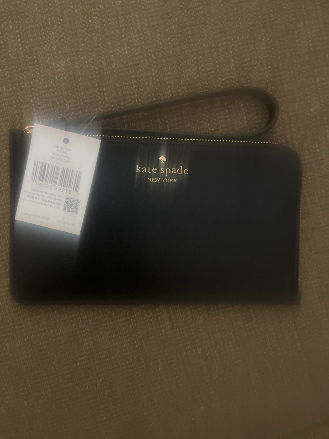 Selling a Kate Spade wristlet wallet in black. It's a stylish and practical accessory to keep your essentials organized. The wristlet is in great condition and ready for a new owner! Originally bought for CAD $179