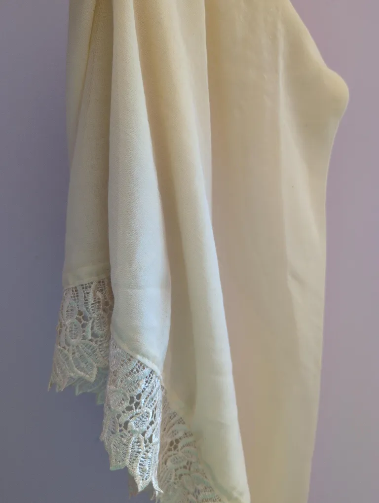 Cream-coloured Shawl with Lace Trim