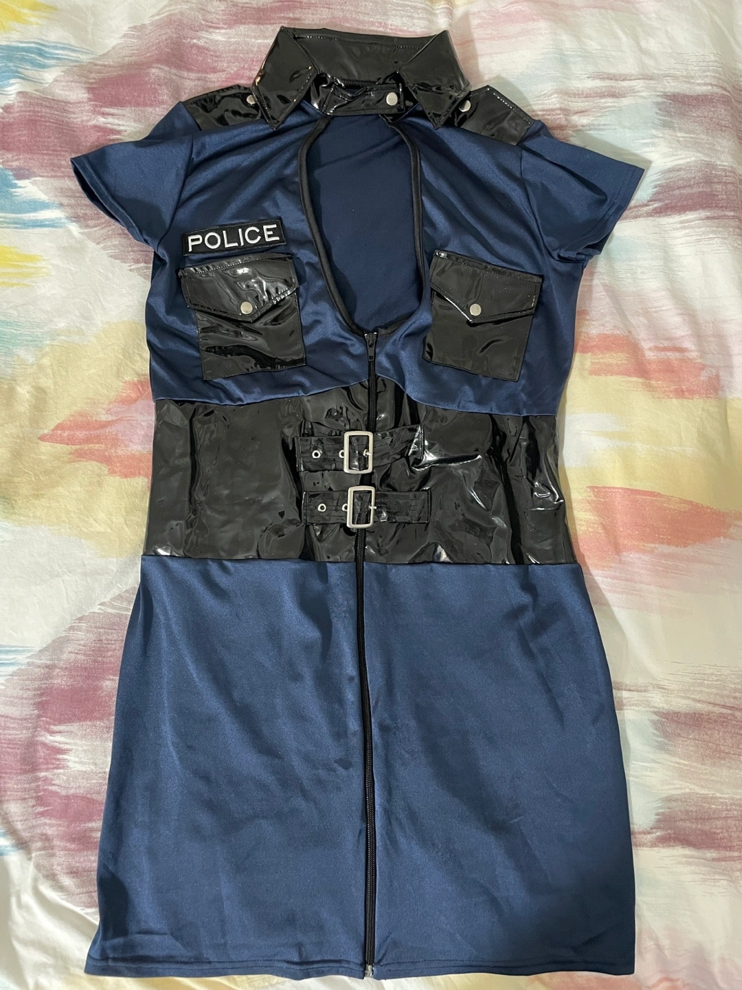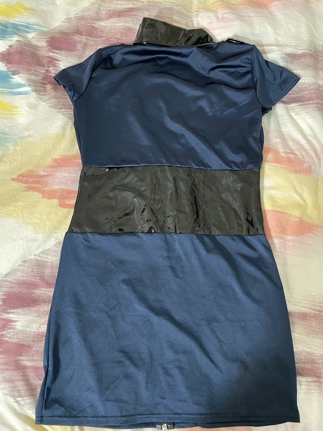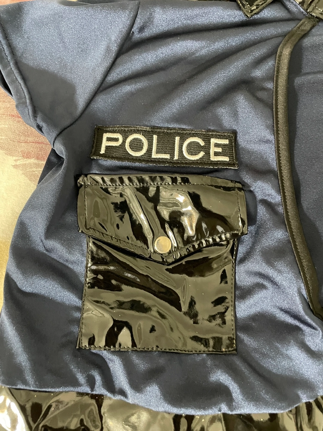 78It's in great condition and perfect for a costume party or event. Only worn once, with no signs of wear. It features a navy blue dress with black patent leather-like accents and "POLICE" patches. Fits medium Pick up near bloor-yonge station