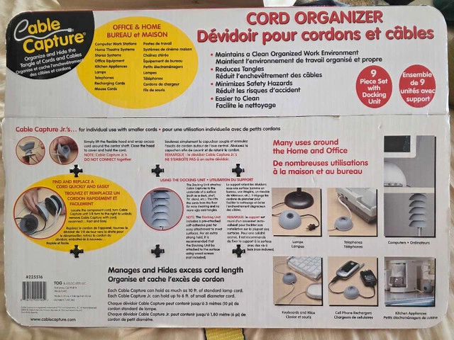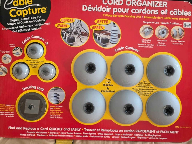 59Organize your space with this Cable Capture cord organizer! This 9-piece set is new, still in its original packaging, ready to tame those tangled cords and cables around your home or office. It’s designed to neatly manage and hide cords, making your environment cleaner and safer. Tired of the cord jungle? This set is your solution! And yes, if you're seeing this ad, the Cable Capture set is still available.