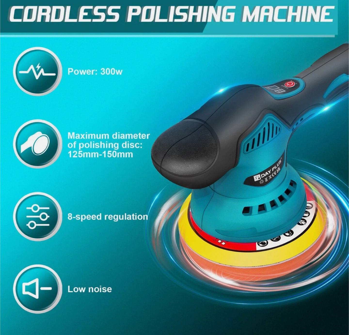 9Selling a cordless polishing machine! It features: - Power: 300w - Maximum diameter of polishing disc: 125mm-150mm - 8-speed regulation - Low noise