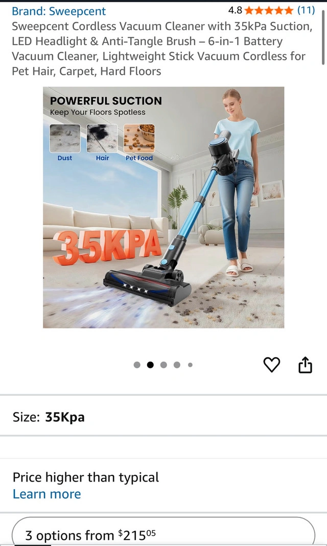 Cordless Vacuum Cleaner with 35kPa Suction