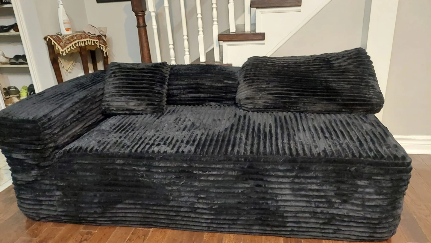 54Selling a comfy corduroy sectional sofa in black! It comes with a few pillows to complete the set. It's in great condition and ready for a new home. Perfect for lounging and adding a touch of style to your living space