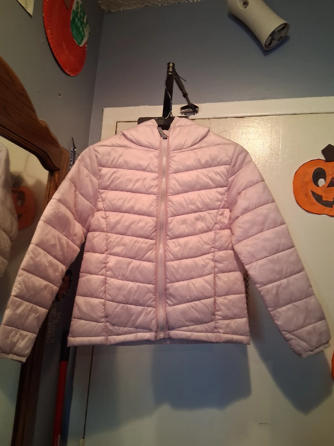 435A light pink puffer jacket from Core Life in youth size medium! It's in great condition and ready for a new home. Perfect for layering or wearing on its own during milder weather day.