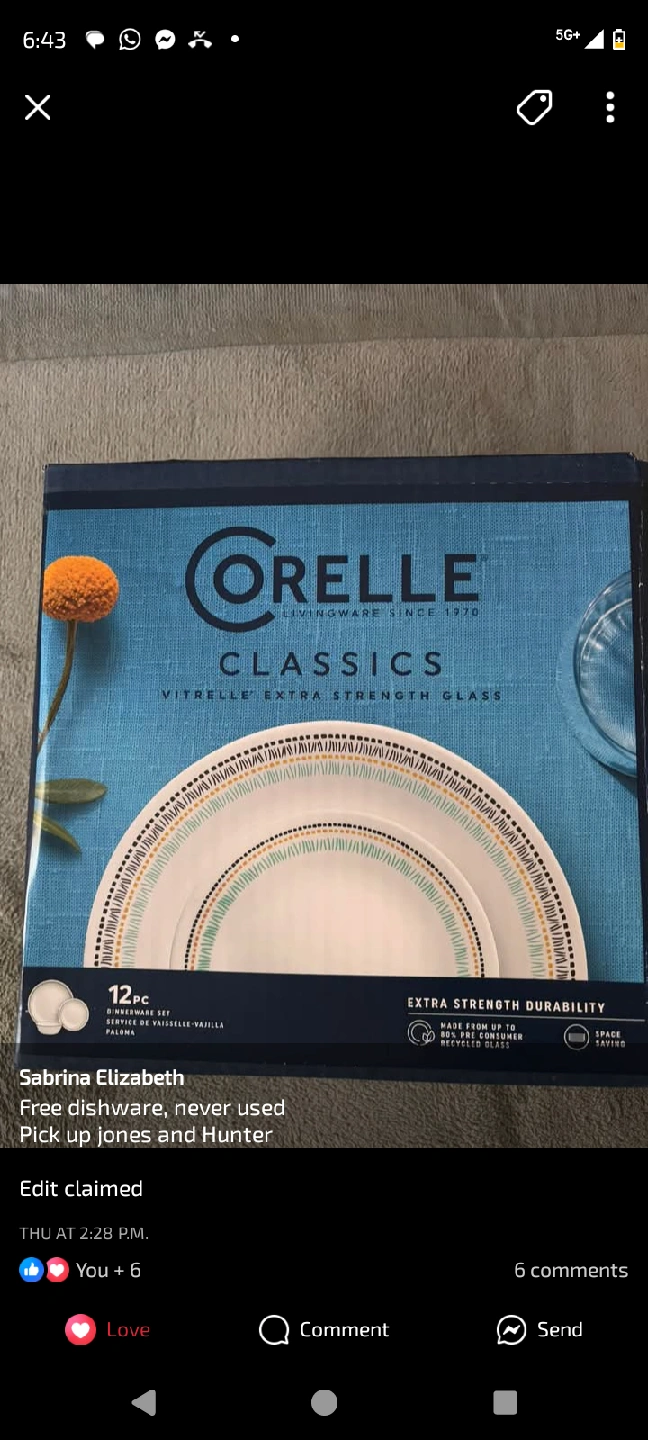 Corelle Classics Vitrelle Extra Strength Glass 12-piece Dinnerware Set. The set includes dinner plates, bowls, and side plates. It features extra strength and durability, and its space saving design will make storage easy. Originally bought for $47.97!