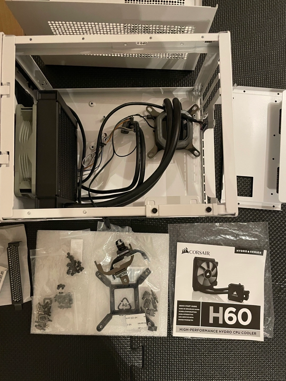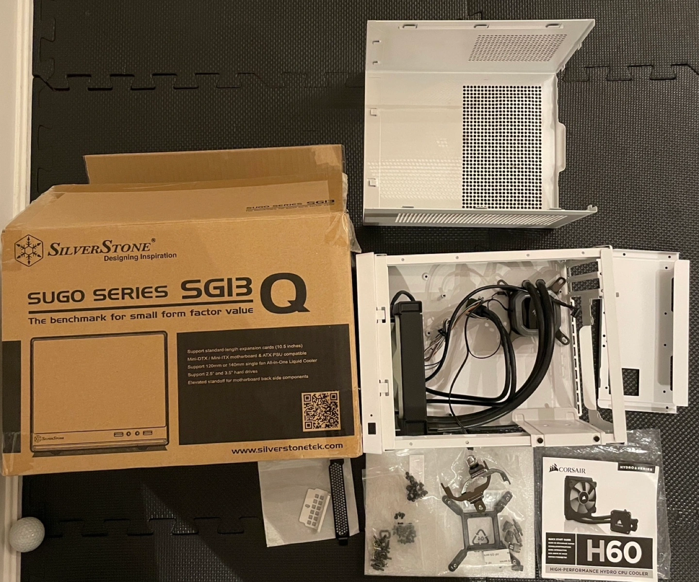 62Preowned Corsair H60 Hydro Series CPU cooler and Silverstone SG13Q small form factor case. Colour is white. Screws and manuals and original box are included. *corsair h60 doesn’t comes with box it comes with installed condition as it shows in the photo.