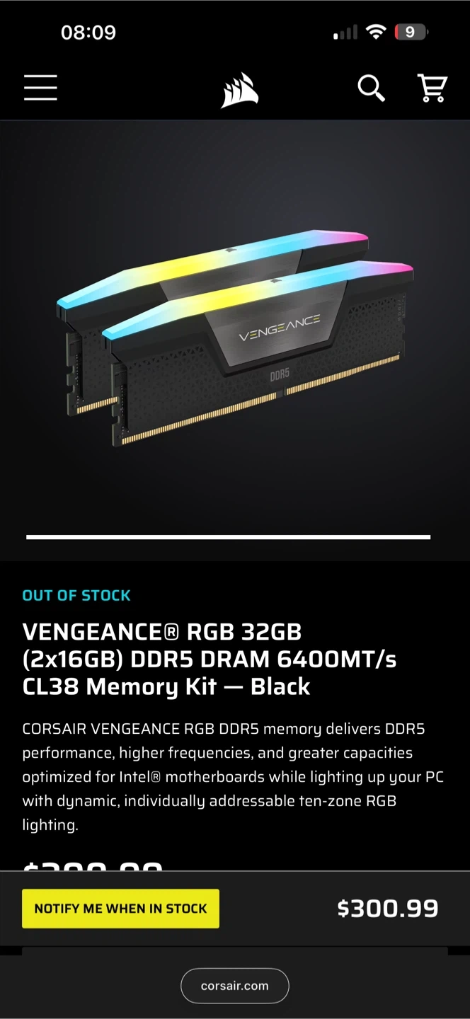 10Selling a Corsair Vengeance RGB DDR5 memory kit, 32GB (2x16GB) at 6000MHz. It delivers DDR5 performance with higher frequencies, and greater capacities optimized for Intel motherboards while lighting up your PC with dynamic, individually addressable ten-zone RGB lighting! Box included