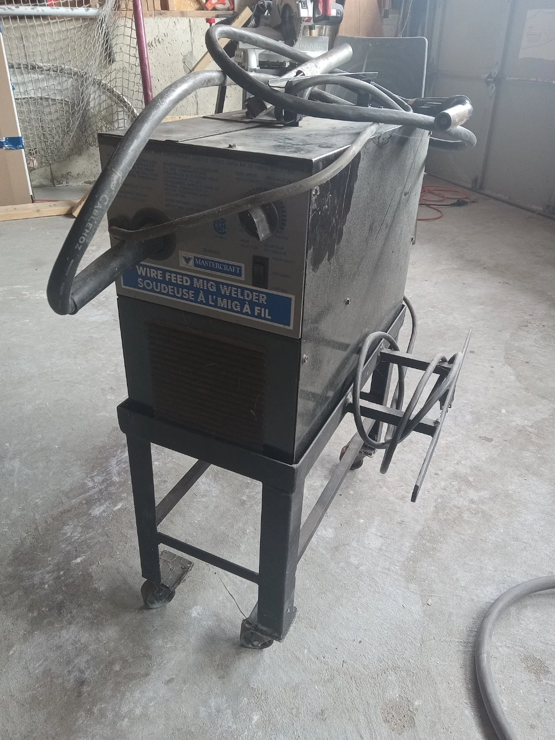 This Mastercraft wire feed MIG welder comes with a wire spool and a convenient rolling stand.