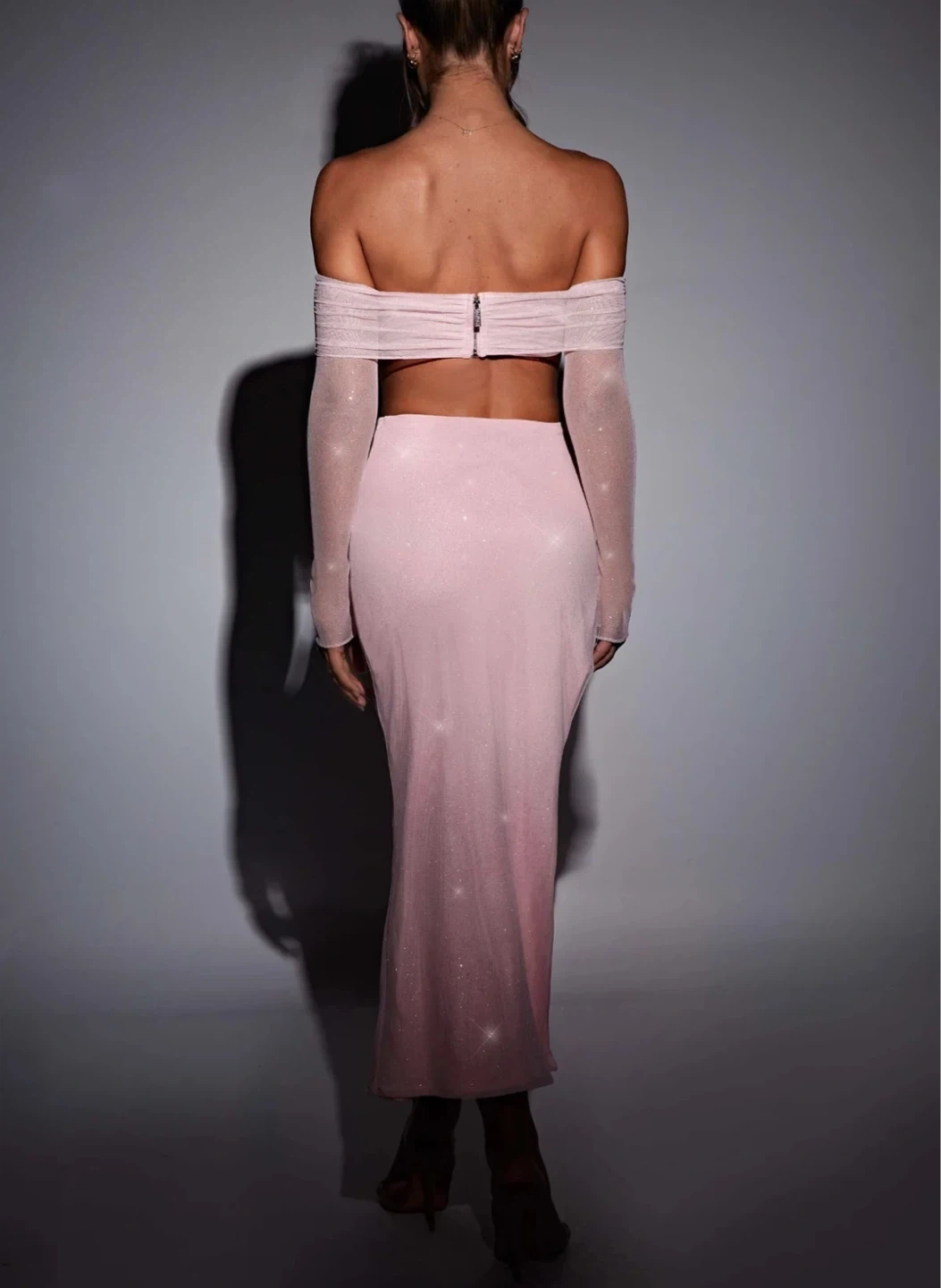 •Long sheer sleeves