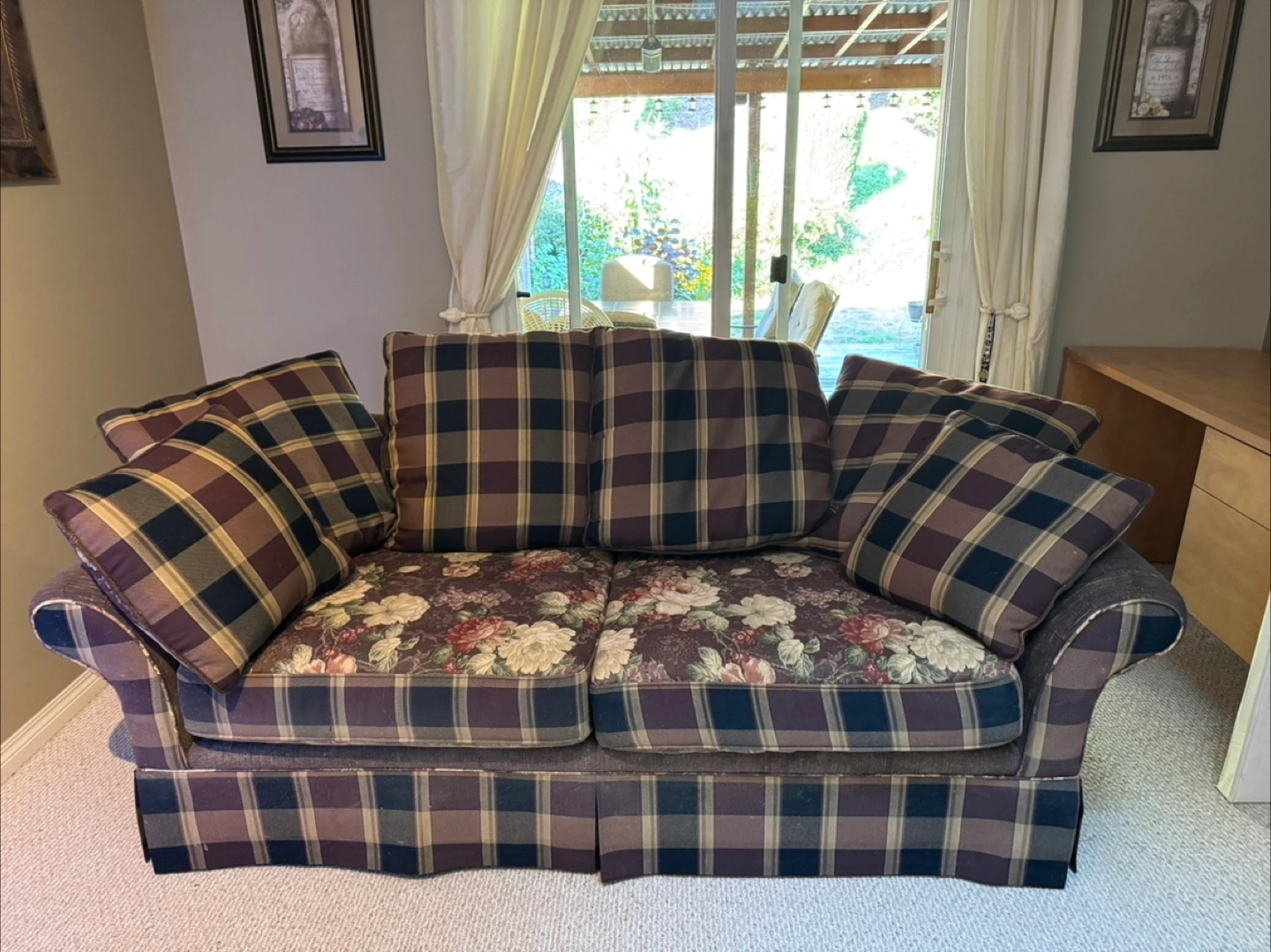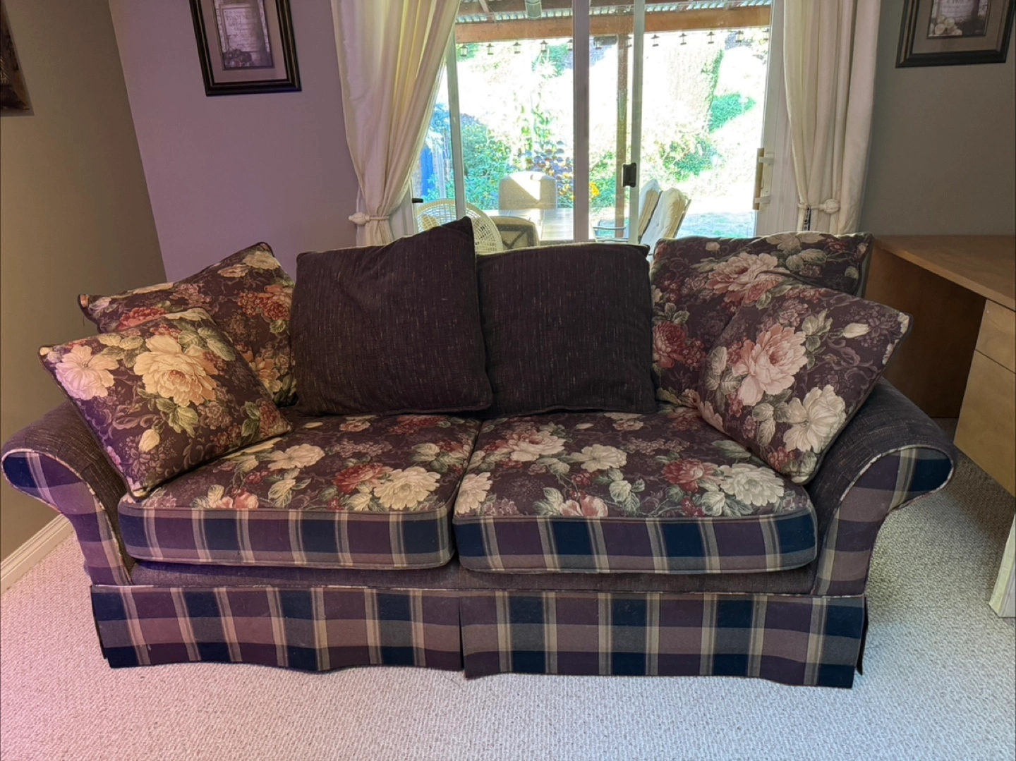Matching couch and chair set! Super comfortable and is in excellent condition! Floral love seat with reversible cushions and matching chair! It’s a great set to have in a sitting area. Smoke free home