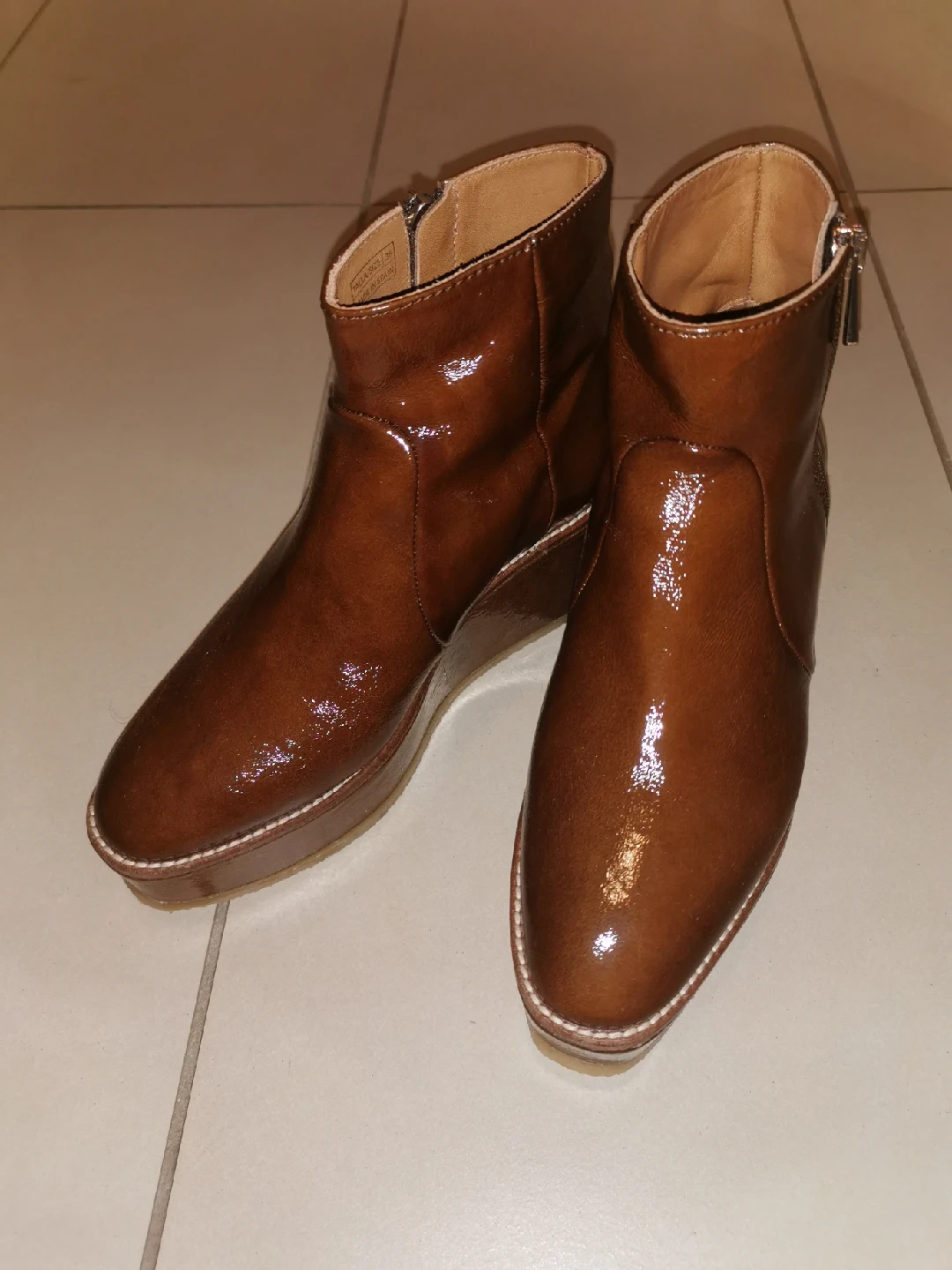 208Selling a pair of Cougar ankle boots in brown leather. They're in great shape and a stylish addition to any wardrobe! Size 6. I bought this around $200. Worn once outside few houres, didn't fit me 🥹