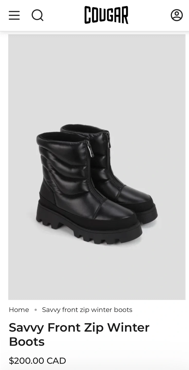 294Selling a pair of Cougar puffy zip-up winter boots in black! BNIB Size: 10 Make a statement this winter with a boot that combines stunning style with unbeatable practicality. Our 100% waterproof winter boots feature a sleek nylon upper that effortlessly balances modern design with weatherproof protection. Whether you're facing slushy streets or frosty mornings, these boots will keep your feet dry and warm without compromising on elegance. Outsole: Synthetic Comfort insole Down to -24c or -11f Non marking sole Polar plush lining permaloft insulation Tpr outsole Waterproof