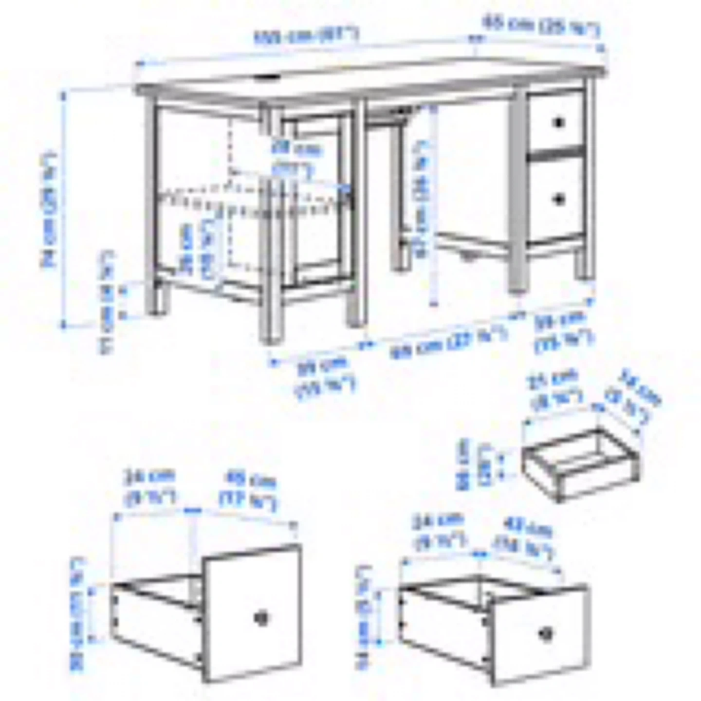 IKEA HEMNES Desk with 2 Drawers and Cabinet