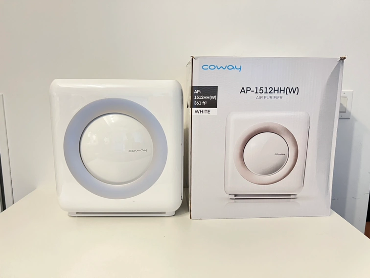 10Coway Air Purifier, Model No. AP-1512HH(W) Large room coverage range of up to 325 ft². Great in taking smells away when cooking and smoking. Improves air quality by removing dust, pollen and smoke. Controlling via mobile is possible. Filters are all cleaned by myself before sale. No scuffs or marks. Original box and packaging included for extra safety while carrying. Pick-up or meetup is preferred, but willing to drop-off at a location of your choice if it isn't too far out. Thanks and feel free to contact me! :)