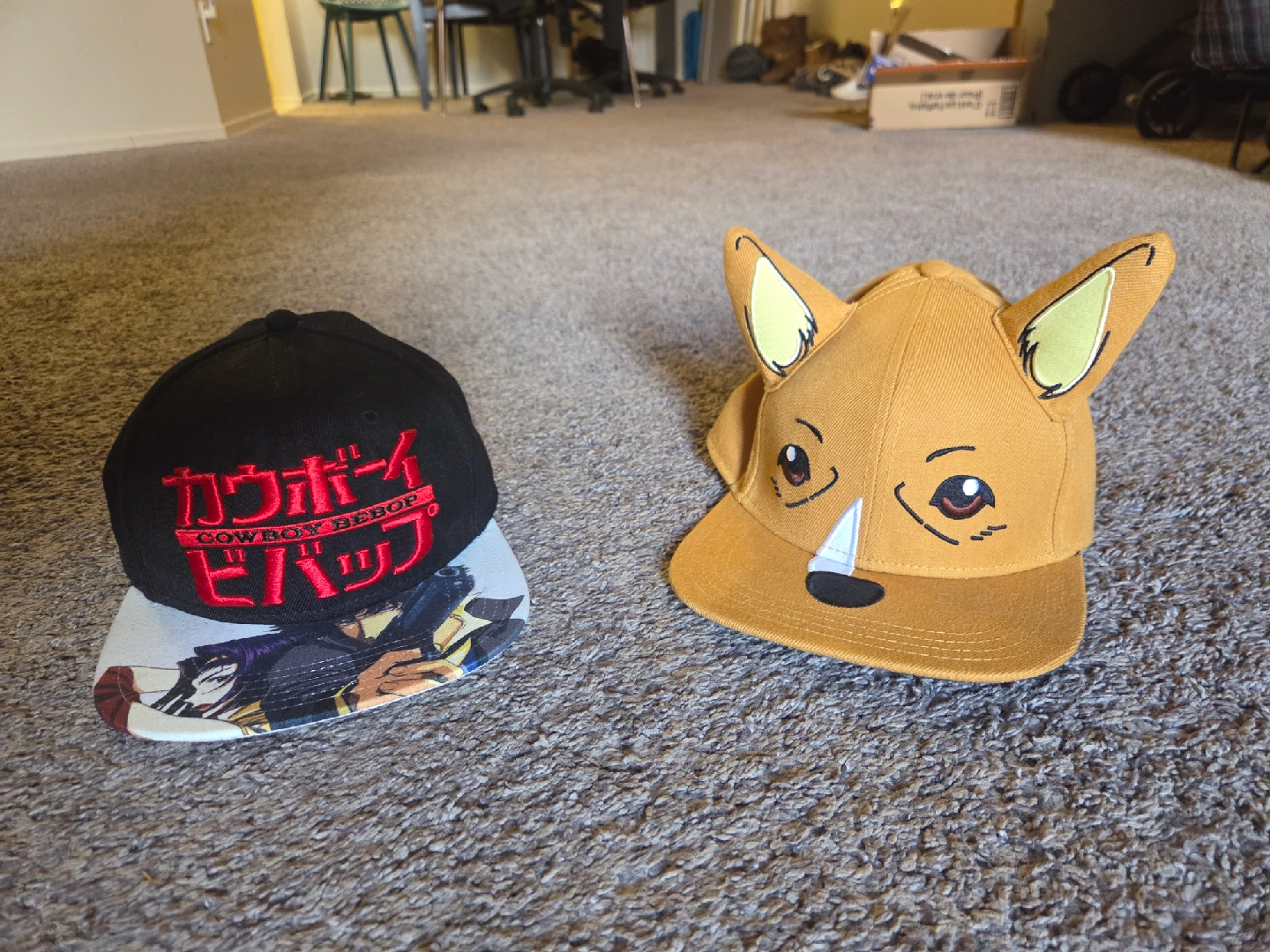 10Selling two fun character hats! One features Cowboy Bebop characters and the other is Ein, the dog from the show. Both are in great condition and ready for a new home. xp. pu imperial.rd.N Asking $15 each obo