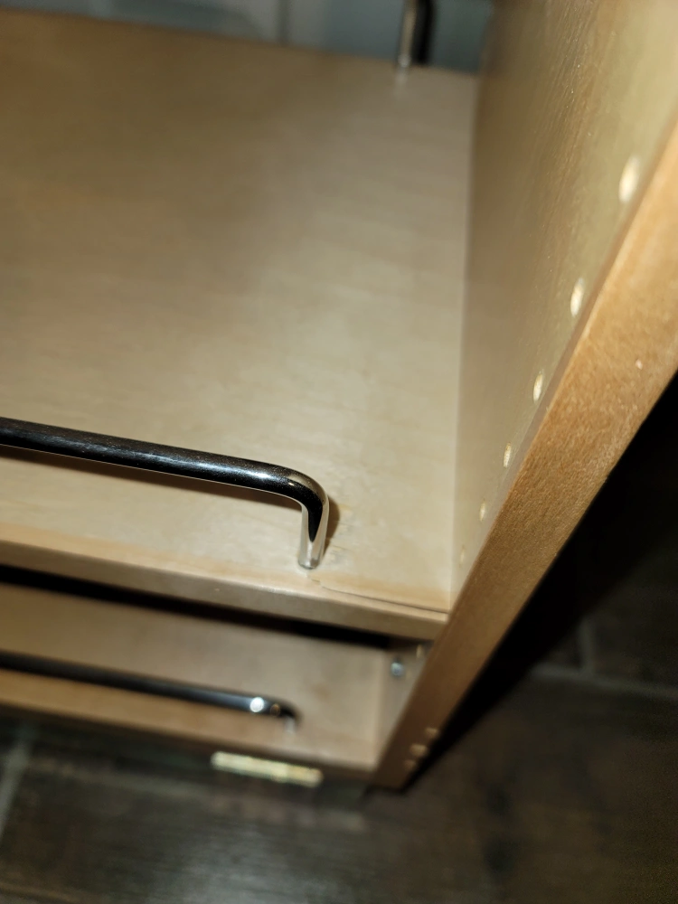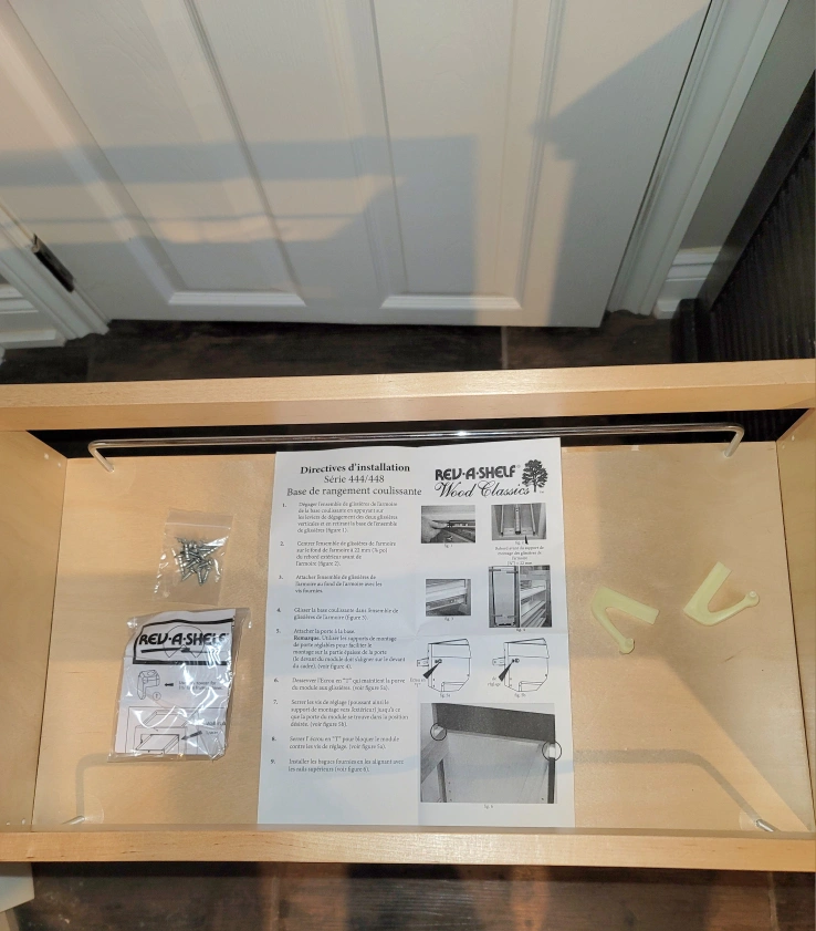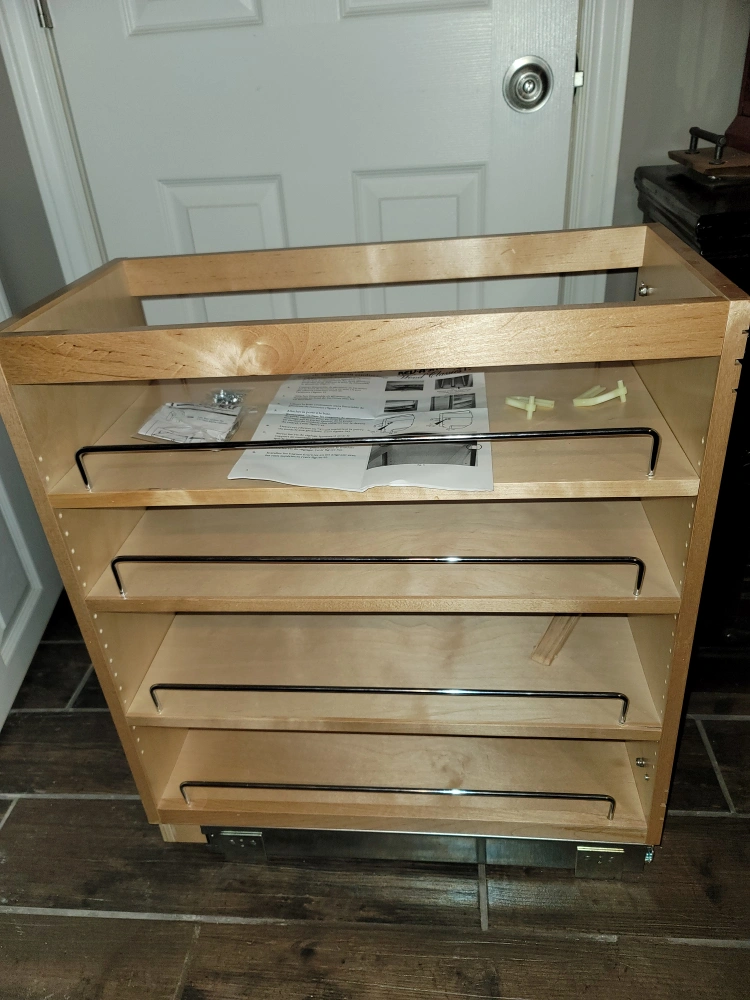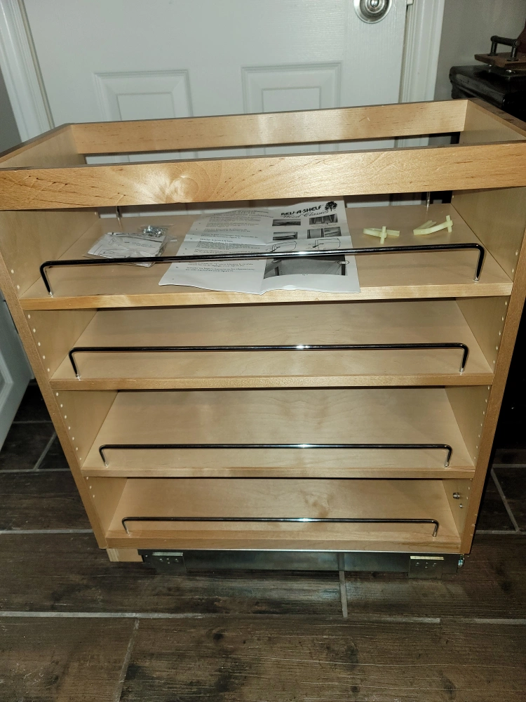I have a brand new Rev-A-Shelf Sliding kitchen cabinet that we purchased to mount in our kitchen. However, we built it, but unfortunately found that it wouldn't fit where we wanted to install it. We purchased it for around $400 and we're hoping to recover a little bit of what we purchased it for. It slides like a dream and is extremely sturdy, strong, and stable. There is one small damaged area that was caused when we were building it. It does not affect its functionality at all. I included a picture of the damage. Thanks so much for having a look and hope to hear from you soon