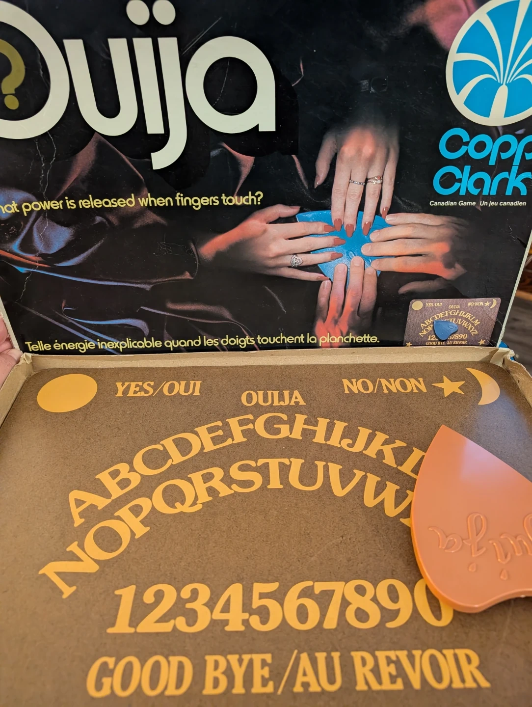 This is a classic Ouija board game manufactured by Parker Brothers. It includes the board and the planchette. This game is perfect for a spooky night with friends or family looking for some mysterious fun!